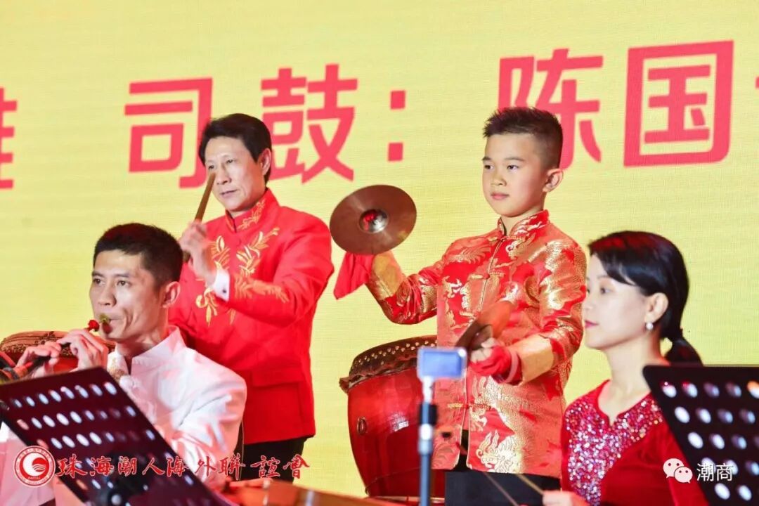 颁发证书环节 庆祝晚宴以气势雄壮的潮州大锣鼓开场,珠海潮人海外联谊会潮乐社与广东潮剧院著名演员联袂演出精彩的潮州音乐和潮剧唱段,祝贺就职盛会。
