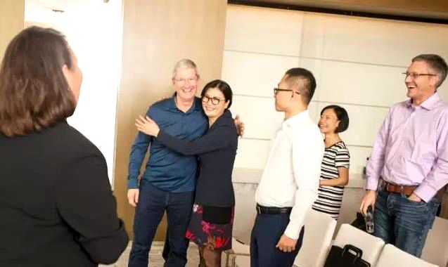 蓝思科技董事长周群飞(左3)与苹果首席执行官蒂姆·库克(左2) 过去,苹果公司的供应商多是低调而神秘的,而在5年前,当苹果首席执行官蒂姆·库克在新浪微博上写道:“非常自豪能和我们的供应商蓝思科技一起,致力于保护环境、促进清洁能源的进一步使用,共同迈向绿色新经济!”外界的目光更集聚到一个方面,那就是苹果公司公开将蓝思科技称为“主要供应商”,这可是苹果史无前例的第一次呀!