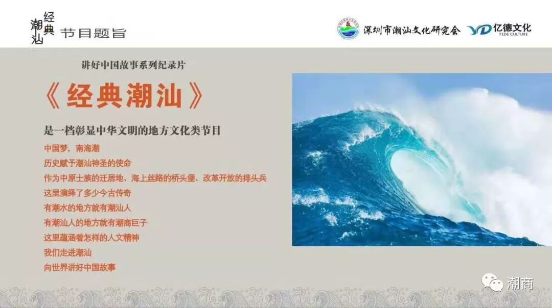 提示:点击上方"潮商"关注我们 潮汕传统文化源自中原地区,堪称华夏文明的“活经典”。时至今日,潮汕民系不仅孕育了拥有全球华人四分之一财富的潮商群体,且保留着古色古香的中华优秀文化传统。近日,一部以推动潮汕文化“走出去”为目标,志在向世界讲好中国故事的大型系列专题片《经典潮汕》在深圳举行启动仪式。 ![]() 大型系列专题片《经典潮汕》在深圳举行启动仪式 《经典潮汕》系列专题片由深圳市潮汕文化研究会主办,为弘扬潮汕优秀传统文化,深圳市潮汕文化研究会发挥文化社团优势,联合深圳亿德文化传媒有限公司策划并创作了这部体现潮汕地区文化特色的大型系列专题片。研究会副会长兼秘书长杨经纬透露,目前研究会正积极申办第21届国际潮团联谊年会,《经典潮汕》专题片也将代表深圳潮团向大会献礼。 ![]() 深圳市潮汕文化研究会出版有《我与深圳》、《中华劝孝歌》、《中华十大慈孝故事》、《潮汕俗语集》等优秀书刊,每年举办几十场大型书画展览。2018年10月18至20日,由深圳市潮汕文化研究会主办、潮团实务交流协作平台协办的“共享新时代 潮人新使命” 首届全球潮人协作峰会暨深圳市潮汕文化研究会成立十五周年庆典、首届世界潮人书画精品展在深圳市宝安区御景国际酒店举行,来自美国、加拿大、新西兰、马来西亚、泰国、阿联酋、日本、菲律宾、柬埔寨、缅甸、巴西、英国、法国、挪威、比利时、瑞典、丹麦等20个国家,港、澳、台、北京、上海、天津、重庆、广州、深圳等地区两百多个潮属社团的领袖和实务工作人员共700多人出席了此次活动。 ![]() 首届全球潮人协作峰会暨深圳市潮汕文化研究会成立十五周年庆典现场 ![]() 深圳市潮汕文化研究会主席(会长)黄惠生致辞 ![]() 深圳市潮汕文化研究会还承办了由全球203家社团和单位联合主办的“潮人闯世界 文化传五洲”全球潮团潮人走访活动,旨在交流社团经验,沟通协作机制,探寻潮商财富密码,实现资源共享,共同发展。目前,全球潮团潮人走访活动已先后走访了新西兰、澳大利亚、美国、加拿大、阿联酋、泰国、菲律宾、柬埔寨、老挝、缅甸、瑞典、丹麦、比利时、瑞士、荷兰、德国、法国、挪威等18个国家以及中国大陆和台湾地区等潮属社团和单位189站202家。 ![]() ![]() ![]() ![]() 声明:本文不代表我们的观点,仅供读者参考。文章版权归原作者所有,如有侵权,请联系我们进行删除。 潮 商 文化的境界 · 财富的智慧