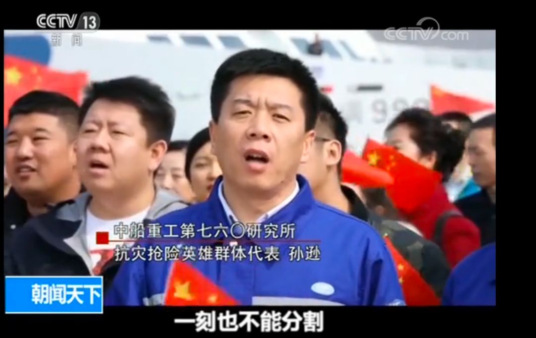 △黄群、宋月才、姜开斌(由左至右) 近日举行的“快闪”活动中,出现了七六〇研究所抗灾抢险英雄群体代表的身影。其中,孙逊唱出:“我和我的祖国,一刻也不能分割,无论我走到哪里,都流出一首赞歌。”