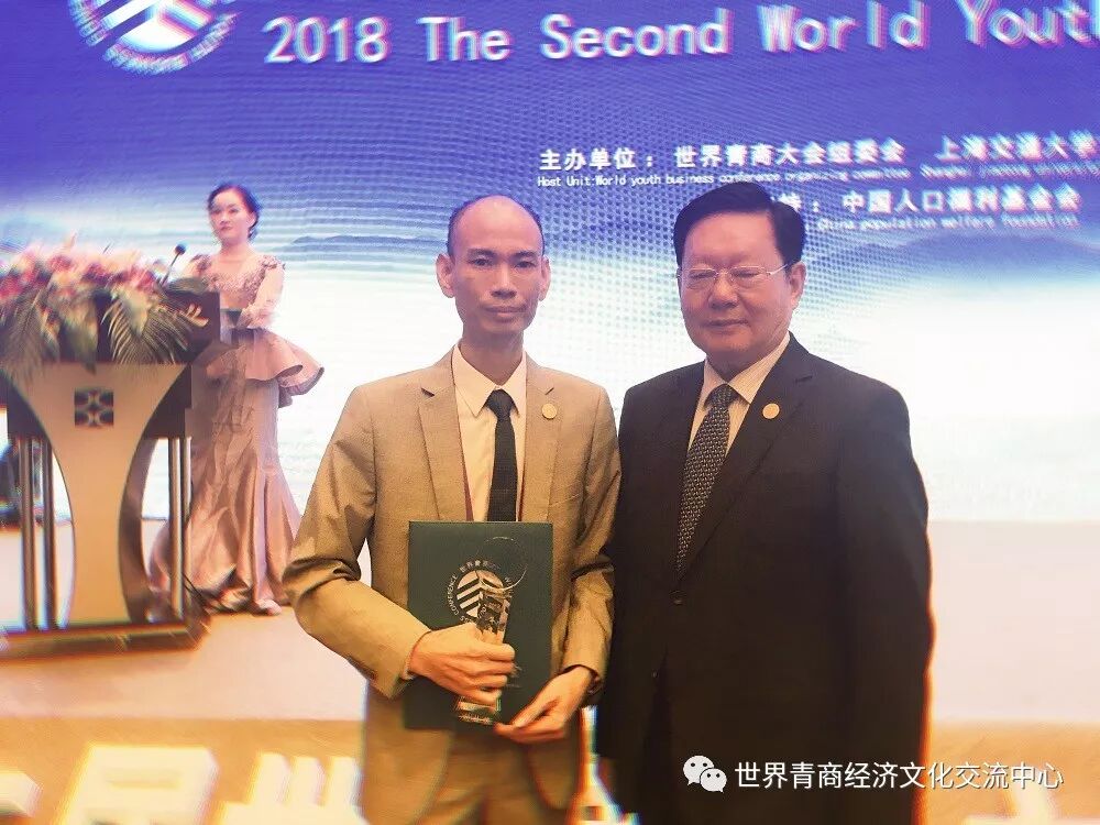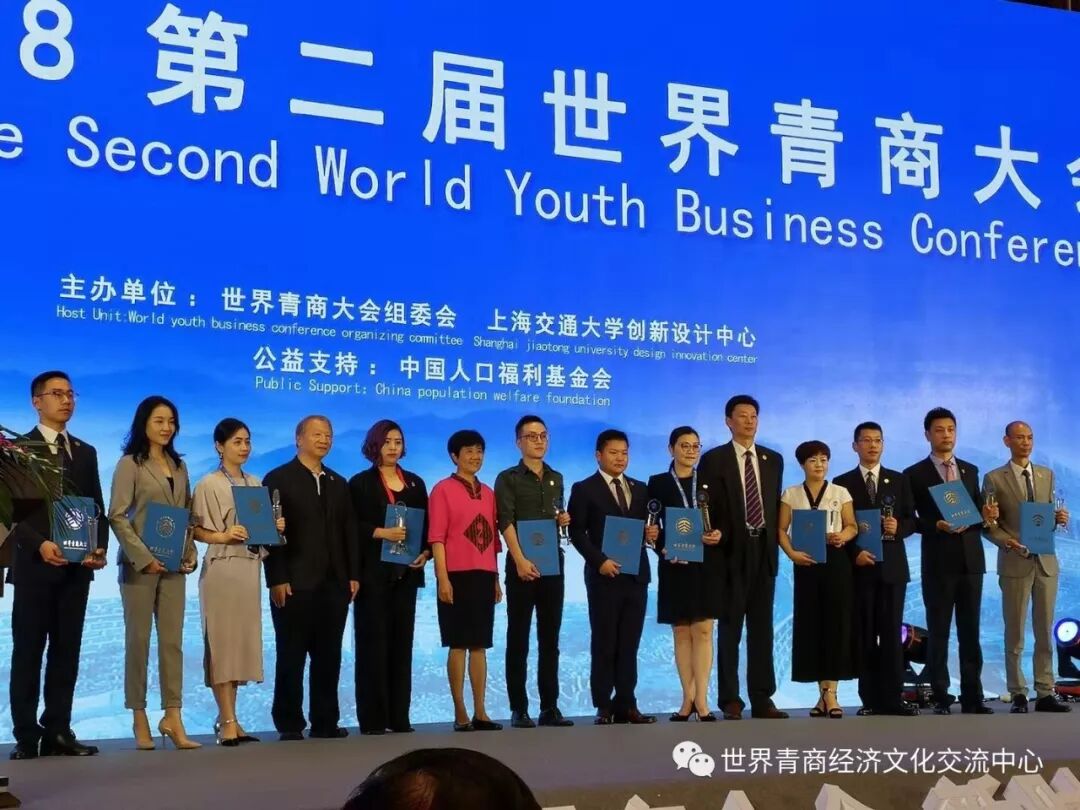 荣获世界青商大会2018年度新锐青商荣誉。中联部原常务副部长、第十一届全国人大外事委员会副主任马文普部长、中国对外贸易理事会副理事长郎晓雷先生为得奖者颁发证书及奖杯。