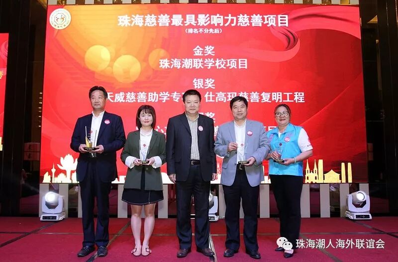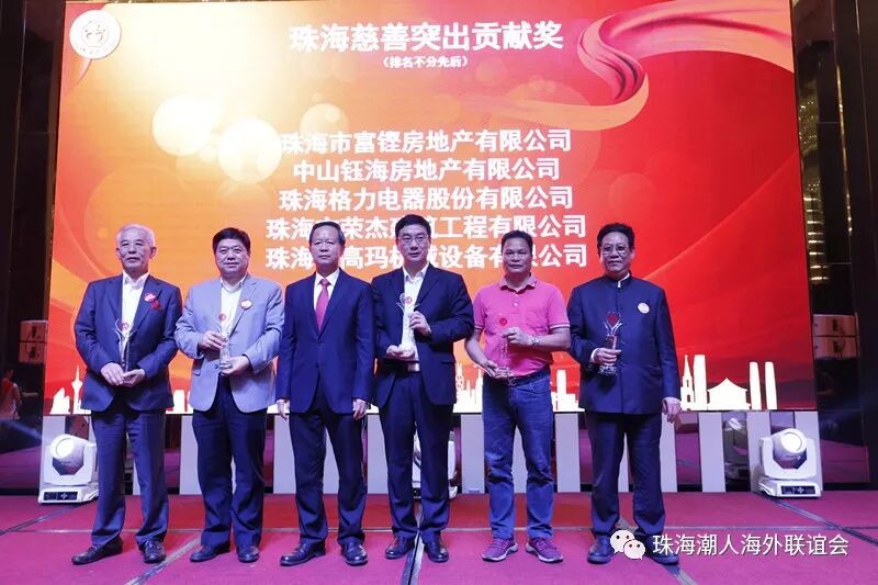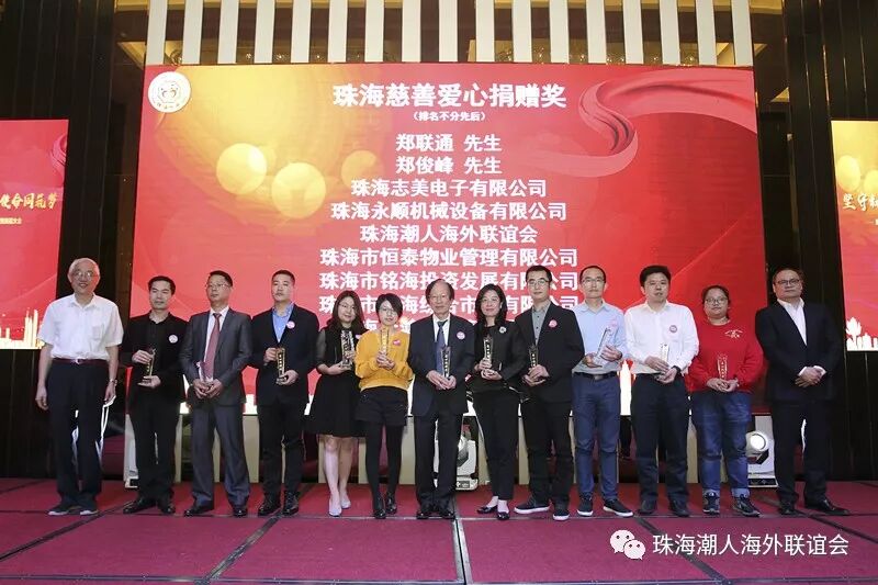 珠海潮人海外联谊会永远会长郑通亮、会长郑志才个人及其企业在过去五年累计捐赠500万元以上,荣获“珠海慈善突出贡献奖”。