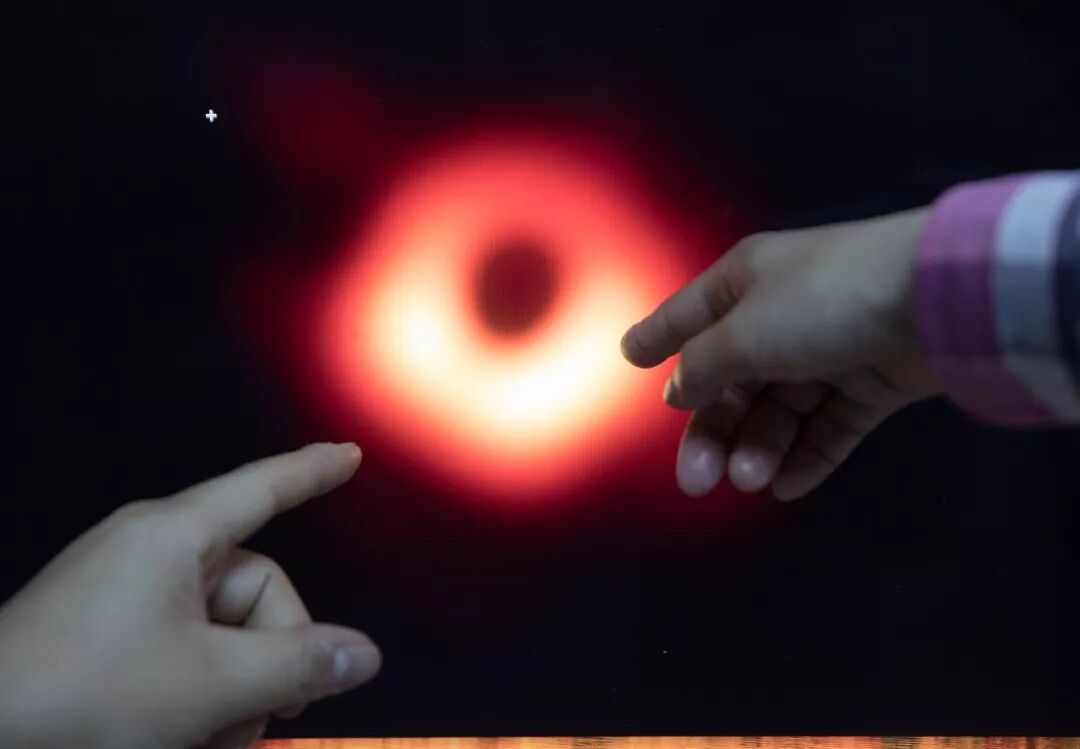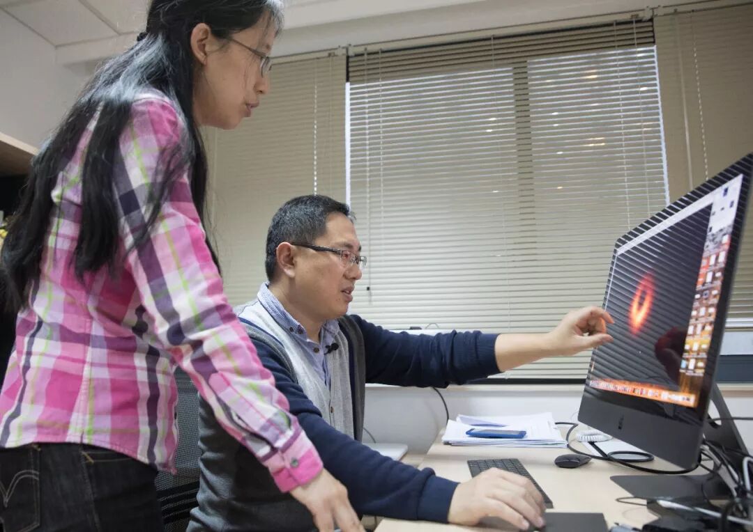 4月9日,在中科院上海天文台,中方团队成员路如森研究员(右)和黄磊副研究员在讨论黑洞照片的成像原理。新华社记者 金立旺 摄 ——听说你长得“大到没边”,那究竟是多大? 黑洞答:不准确!我只是很重,但我的体积很小。 解说:在多数人的想象中,黑洞之“大”超出人类对于大尺寸数量级的直观认知。但准确说,“黑洞只是质量和密度超乎想象的大,比如这次拍到的黑洞质量是太阳的65亿倍,属于超大质量黑洞,但体积却比较小,小到在其内部几乎没有空隙。”参与此次国际合作的中科院上海天文台研究员路如森说。 举个例子,“如果我们要将太阳变成黑洞,必须将太阳压缩到一个半径非常小的空间内。”沈志强说,而一旦太阳被压缩到这么小的空间内,就可以改名叫“黑洞”了,它拥有超强引力“先天基因”,可“吞噬”周围的气体、尘埃,乃至临近的恒星系和较小的黑洞。超强引力帮助黑洞以极其暴力的方式“跑马圈地”,宣誓自己的“势力范围”。 ——首张黑洞“写真”拍的是你哪个“部位”? 黑洞答:我的侧颜“轮廓”。 解说:参与此次国际合作的、论文发表工作组五成员之一、中科院上海天文台副台长袁峰说:“照片中,黑色圆影的中央‘隐藏’着黑洞的真身。圆影外侧新月形的光环是黑洞周围气体发出的光,所以,准确地说,首张黑洞‘写真’拍到的是黑洞的‘轮廓’。” 人类史上首张黑洞照片如何拍成?2分钟带你看懂! ——黑洞,你到底黑不黑? 黑洞答:外面黑,里面也许不黑。 黑洞像个“至暗无底洞”,即便大名鼎鼎的“最牛飞毛腿”——光也难逃“魔洞”。但已故科学家斯蒂芬·霍金推断,黑洞并不像想象的那么黑,事物可以从黑洞逃脱。 哪个是真?哪个是假? “从照片上看,黑洞的势力范围之内的确漆黑一片,但是势力范围里面,那个质量超大、体积超小的天体到底什么颜色,照片上还看不清楚。”沈志强说。 而对于被黑洞吞噬的一切事物有没有科幻电影中畅想的“逃离通道”,路如森说:“仍不清楚,照片中没法看到,可能没有。”