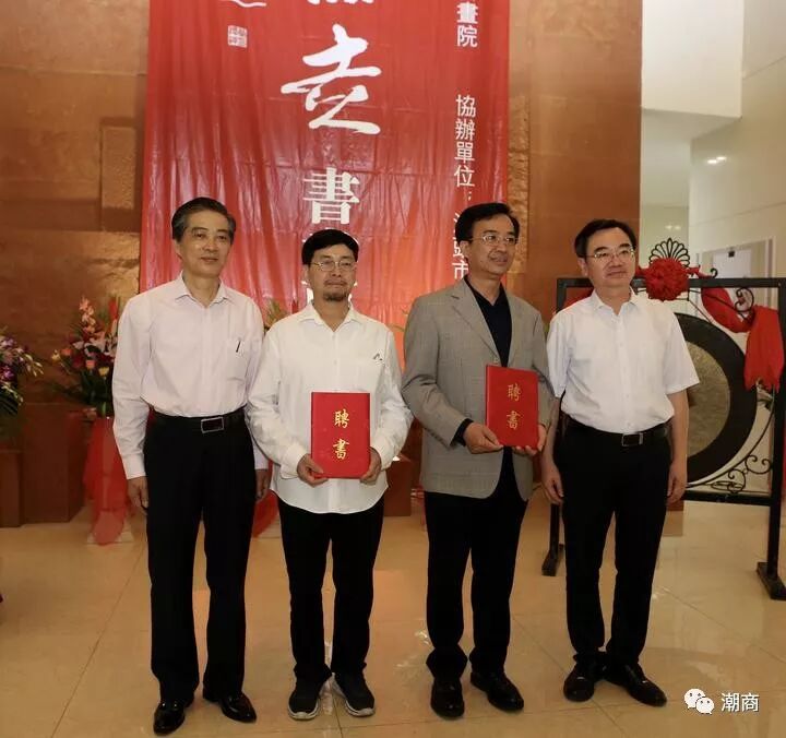 汕头书画院院长陈松杰在展会仪式致辞 展会仪式,汕头书画院院长陈松杰致欢迎辞并发表讲话;本次展会得到汕头市文化广电旅游体育局的精心指导与支持。展会共有44位书画家创作出88幅精品力作。书画家用手中的画笔描绘了对祖国、对时代、对家乡挚爱之情的表达,画家们以艺术的形式,用翰墨溢彩讴歌盛世,《不忘初心跟党走》紧跟新时代,共享新未来。展会仪式宣读汕头书画院特聘著名书画艺术家陈春盛、黄树光为书画院顾问。展会同时为10位书画家颁发纪念证书。