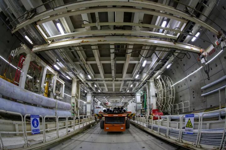 在盾构机最前方,是用于开钻泥土的一个直径约5层楼高的圆形刀盘,在掘进过程中,需要根据掘进情况不断优化刀具配置,从而使盾构机始终处于最佳掘进状态。“目前,海湾隧道东线盾构施工进度突破1024米,成功地在水下淤泥地质条件下完成了2次带压进仓作业。”李文玉表示,在水下淤泥地层、开挖直径15米级条件下实现带压进仓作业,在国内尚属首例,为我国大直径盾构机水下带压进仓作业积累了经验。 此外,盾构管片和隧道砼结构耐久性和缝隙控制也是工程的重点。“每一环管片需要安装螺栓达到86颗,东、西两条隧道总共3047环,共需要安装26.2万颗螺栓。”李文玉说,管片采用“7+2+1”分块模式,错缝拼装,斜螺栓连接。管片采用高性能耐腐蚀混凝土,两道弹性密封垫和内侧嵌缝防水,抗渗等级P12,确保工程百年大计。