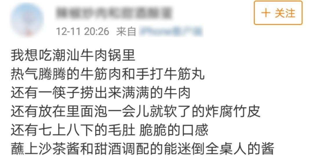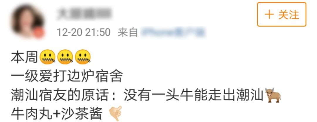 ▲图片来源:微博截图 沙茶和牛肉就是一对好基友,彼此成就,缺一不可。一个潮汕人吃一顿牛肉火锅能加几次沙茶酱?答案是没有上限。只要菜不断,沙茶就绝不可能先断。 潮汕人要是知道有人吃牛肉、牛筋丸竟然不蘸沙茶酱,分分钟就叫快递小哥上门给你空运一罐过去。