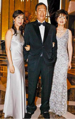 郭台铭与已故妻子林淑如(右)、长女郭晓玲 2005年3月12日,55岁的林淑如因乳癌过世,临终前,林淑如最不放心的是自己一双儿女。病榻前,她特别托孤给自己的小阿姨黄秋莲,请她多加关照。仅凭这一点,就可以看出郭夫人林淑如与黄秋莲的关系有多深。