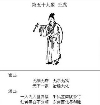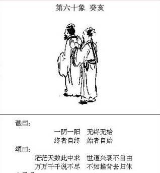 第六十象是《推背图》最后一象,作为全图的总结,实乃无象之象。老祖宗留下的一幅太极图,已说尽天下所有的哲学道理;其所揭示的阴阳消长对立统一之道,乃天下万事万物亘古不变的发展变化之理,无一例外,无始无终;该发生的必然要发生(始者自始),该结束的终归要结束(终者自终),远非区区人力所能左右(世道兴衰不自由)。 先贤之所以“泄露天机”,以此《推背图》昭示后人,亦无非是要人顺应潮流,把握潮流,于潮流中去寻求“有为”,尽自己一份做人的责任和使命,莫逆天行事而已。然先贤亦知“泄露天机”很有可能给自己带来灾祸和不幸,犹“大胆妄为”而作《推背图》,也是为了尽自己的这份责任和使命吧。说的已经太多了,不如推背而去。 6、让时间来验证 个人的解读准不准,只能等待时间的验证。 《推背图》为我们展现了一幅波澜壮阔的历史进程,作为个人,在这滚滚历史大潮中是渺小的,我们已久不经战争,战争却向我们走来,主席说的“时刻准备打仗”绝不是无的放矢,唯有紧紧的团结在国家和中国共产党的旗帜下,个人才能有作为,家庭才会有安全。 我们是龙的传人,道路自信、理论自信、制度自信、文化自信,中华民族必将屹立在世界民族之林的巅峰! 来源 | 新华人资讯 文化的境界 · 财富的智慧