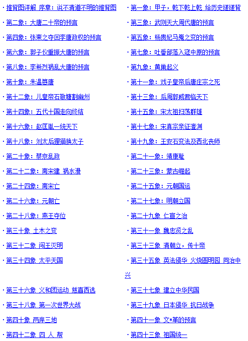 4、我为什么要解读《推背图》 个人偏爱国家国际时事,透过《推背图》的预言结合个人的学习心得解读其对中国及世界今后若干年发展大事大势。 42象之前都是已发生的事,解读应从43象开始,但为方便解读叙述从44象开始,第43象将结合50象解读。 个人自认为对这些预言的解读除了时间上可能有出入外,局势的发展如果是按照解读的逻辑那样发展,缘由也许未必完全是我解读的那样,但事件对应应是八九不离十。 2015年的时候,曾犹豫要不要成文发表出来,担心被人利用影响到局势的发展,后来想明白了,历史潮流的发展浩浩荡荡,顺之者昌,逆之者亡,又岂是逆之者所能阻挡的? 国际形势的发展很多时候都是在打明牌,就看哪一方的力量大,如果某一方沦落到要靠网络的一篇文章来扭转局面的地步那就是离失败不远了。 个人的解读侧重在事态的发展逻辑,不会全部逐字逐句解读,明白了发展逻辑,预言的个中语言和图画所要表达的意思就很好理解了。另在预言中现在有些国家不属于中国版图,但在历史上,尤其是在唐朝是有密切关系的。 《推背图》为我们展现了一幅波澜壮阔的历史进程,未来国际局势的发展是不是按照这样的步骤进行是不确定的,但展现的进程是有其内在合理的强大的逻辑。 5、正式解读《推背图》 第44象 王者之座