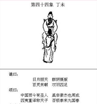 个人解读: 这一象说的是中国经历多重考验后终于登上王者之座,这象是后面45象-57象的总纲,只有深刻理解了这一点,才能顺利的解读后面各象,明白后面各象的逻辑。 这象的“四夷重译称天子”和58象的“大乱平,四夷服”是相对应的,中国只有经历了45象-58象的“否极”,才能迎来“泰來九国春”。 环顾当下,中国崛起面临的外部主要挑战有哪些? 毫无疑问是:台湾问题、日本问题、朝鲜半岛问题以及琉球问题,这几个问题和美都是密切相关,就是和美霸权的安全框架密切相关。那后面各象是不是说的这些问题?我来一一解读。