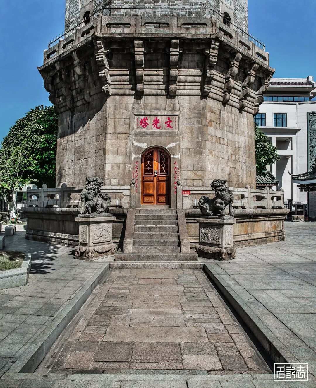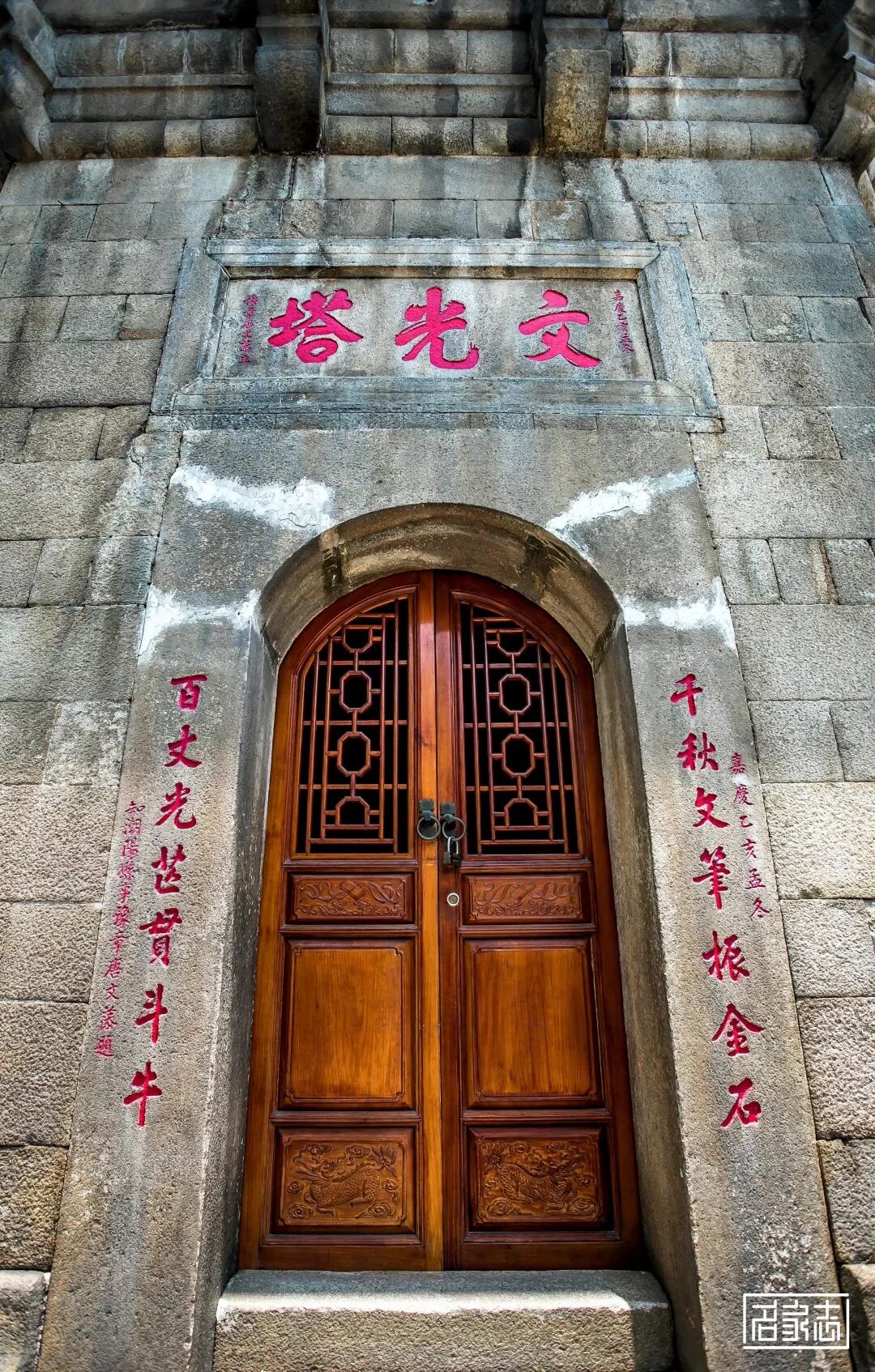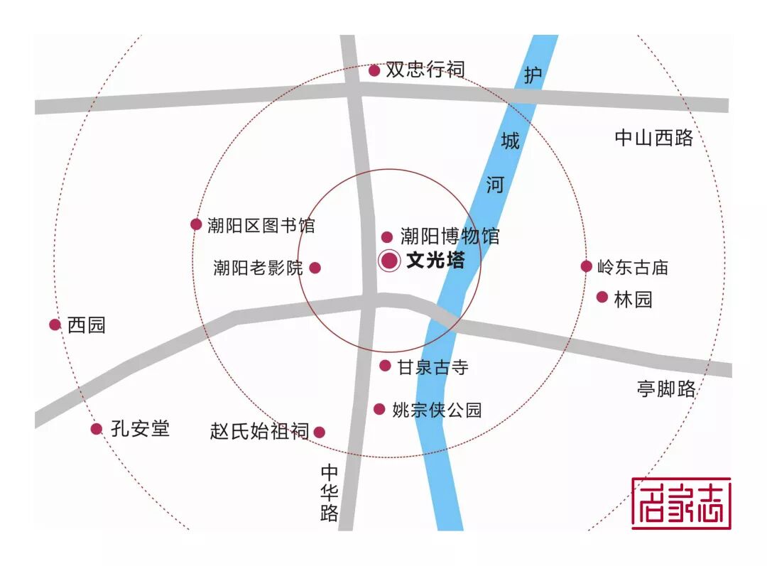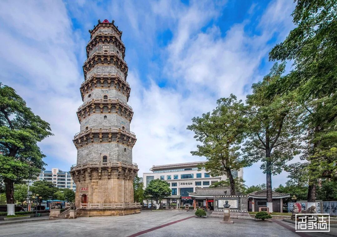 提示:点击上方"潮商"关注我们 本文经授权转载自“名家志”公众号 ![]() 解读潮阳文光塔 天然石块有什么用途? 888年前,潮汕人民祖先就想到利用石块和当时有限的技术建设文光塔。至今,文光塔仍矗立在潮阳城区中心,是广东省内保存得最完好的古塔。 眼看时下,巴黎圣母院在十天前失火,引发人们对古建筑的保护和修缮的热议。 及至身边,潮汕先祖的劳动智慧不得不让人叹为观止,他们的后代对这座集三朝古塔建筑艺术风格于一身;融儒、释、道“三教”文化于一体的古塔更是珍而惜之。 | 建筑档案 坐落地点 – 汕头市潮阳区中华路东侧 始建年份 – 宋绍兴元年(1131) 重建年份 – 宋咸淳二年(1266) 复建年份 – 明崇祯八年(1635) 修缮年份 – 清嘉庆二十年(1815) 1949年后历经多次维修 最后一次比较大型修缮是2019年, 期间发现了宋代塔基须弥座和古甬道。 建筑层数 – 7层 古塔高度 – 42.68米 建筑坐向 – 坐东北向西南,平面呈八角形 历史时刻 – 1989年被列为广东省文物保护单位 2013年被列为全国重点文物保护单位 十分钟的步行旅游圈 进入潮阳城区,便可远望文光塔。 走进文光公园,大树环绕公园一周,文光塔矗立于一角,与位于其北面的潮阳博物馆仅一条文化长廊之隔; 西面为潮阳区图书馆;南面是城区中心主干道;东面依靠练江分支护城河。 △ 文光塔区位图 文光塔宋绍兴元年(1131)始建,后来倒塌; 宋代1266年重修,在里面陈列千尊佛像,所以称为“千佛塔”; 建设初衷是仿效印度以佛塔弘扬佛法,并欲以塔“增形胜”建成“风水塔”。 △ 文光塔夜景 原名“千佛塔”,后为借风水之力量提升文气,欲“文事昌盛”,认为高塔朝天写文章,象征代代人才辈出,可光耀潮阳。 明朝因为地震,塔放出毫光,当地老百姓认为是人文昌盛的好兆头,就改名为“文光塔”。 名字沿用至现在,是广东现存最完整的一座古塔。 △ 碑记 沿着千年古邑棉城主干道漫步,以文光塔为中心辐射四周,棉城”四奇“的古树、古塔、古寺庙、古园林便在游客十分钟的步行旅游圈内。 △ 文光塔辐射景点 举步可到达甘泉古庙、姚宗侠公园、岭东古庙、清末曾名噪潮汕的潮阳三大古园林之一的林园。 西行可至孔安堂、爱国名士丘逢甲所说的“只为西园也合来”的西园,以及近期在修复修缮的耐轩园。 △ 西园 △ 林园 △ 耐轩园 三朝三教合一如船桅 如今,文光塔不仅是粤东著名旅游胜迹之一,还是潮阳最重要的历史文化标志性建筑。 △ 文光塔 她具有显著的建筑艺术风格、丰富的文化内涵和独特的结构方式。最主要有两个方面的特点: △ 首层顶部构筑与道教图腾 △ 佛教的佛祖雕像 第一个特点是融儒、释、道“三教”文化于一体。 现在塔里面还保留着三清、佛祖、观音莲座、玄天大帝、文昌帝君的雕像,这便是一个很好的证明; △ 塔内空间 塔每层的天面都有各种寓意深刻的图案,比较特别的是第三层,天面图案是的蝙蝠。 而每到夏天,这一层聚集的蝙蝠最多,不知是巧合还是其它原因,总之,民间称第三层是纳福之处。 相传谁只要抬头望一下第三层,福气就会降临到谁的身上! △ 天面图案(可上下拉动查看) 第二个特点是集宋、明、清古塔建筑艺术风格于一身。 塔构筑按朝代可分三层,塔基底层“须弥座”是宋朝的,塔基中间是明朝的,塔基上端首层栏杆至顶尖是清朝的。 各级专家称赞她具有很高的科学文化价值及社会历史价值。 △ 石斗拱(可上下拉动查看) 首层塔门前2支望柱柱端为蹲狮造型,其余各层栏杆柱头为莲花蕾形状。 首层墙体由四方条形石块筑成,2至7层石斗拱出跳承托石板,墙体为青灰砖条筑成,墙体厚度由二层2.95米逐层递减至七层1.5米。 △ 基座与首层回廊 △ 二层回廊 此外,不少人认为,文光塔是一座风水塔,一直是潮阳的标志并完好保留到现在。 一是,棉城的地形像一艘船,文光塔就如船上竖起的一根船桅,矗立在棉城的中央,登上塔顶可以俯瞰到城区的景物。 而船有了船桅,便可扬帆乘风,劈波斩浪前进,所以文光塔历来被当作平安吉祥的象征。 △ 潮阳老地图 二是,据资料记载,葫芦是常用的风水道具,其效果好,威力大,作用奇特。 因为它嘴小肚大的外形,可以将好的气场收纳为己有,也可以将坏的气场吸收殆尽,不至于造成危害,是辅佐风水布局、加强感应的绝佳道具。 故此,许多道观、佛寺及塔型建筑,多以葫芦作为镇顶之灵宝,文光塔也不例外。 △ 塔顶葫芦 强化文气的人文景观 游人进入塔内,可依122级石梯级螺旋向上升。 不难发现,螺旋石梯仅供一人通行,每层都有石门通向塔廊,除第一层和第七层只有一个石门外,二至六层都有四个对应的石塔门。 △ 首层楼梯 △ 二至六层螺旋石梯 塔中三至七层供奉着不同的神位,并且每个石门都有石刻匾额,首层还有门联,呈现出十分浓厚的人文景观。 一层门匾额题“文光塔” ,门联为“千秋文笔振金石,百丈光芒贯斗牛”,此乃嘉庆年间知县唐文藻所题。笔墨饱满,结构紧凑,潇洒自然,稳重厚实。 △ 文光塔门联及牌额乃清代嘉庆时潮阳知县唐文藻题书 二层匾额分别为“云门列岫”、“螺髻增辉” 、“练江笔海” 和“棉岭文峰”。 三层匾额分别为“统宗河岳” 、“卓立乾坤” 、“光华复旦”和“文运重开”,并供奉着文昌帝君的神位。 △ “高百粤”匾额 △ “探月窟”匾额 四层匾额分别为“探月窟”、“达天衢”、