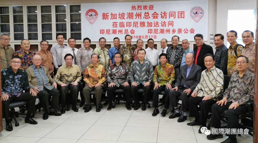 2019年5月16日,新加坡潮州总会会长谢楚明带领代表团一行17人抵达印尼,受到印尼潮州总会会长曾国奎、监事长蔡明盛、潮州乡亲公会会长黄财利以及蔡裕资、李汉泽、连介豪、周沅瑶、纪逢贞等潮人领导的欢迎,当晚在慕利亚酒店宴请贵宾并进行交流。17日,代表团访问了印尼潮州乡亲公会,与印尼潮州总会及潮州乡亲公会代表亲切会谈,就搭建亚细安潮人平台,促进兄弟潮团之间合作进行了交流。
