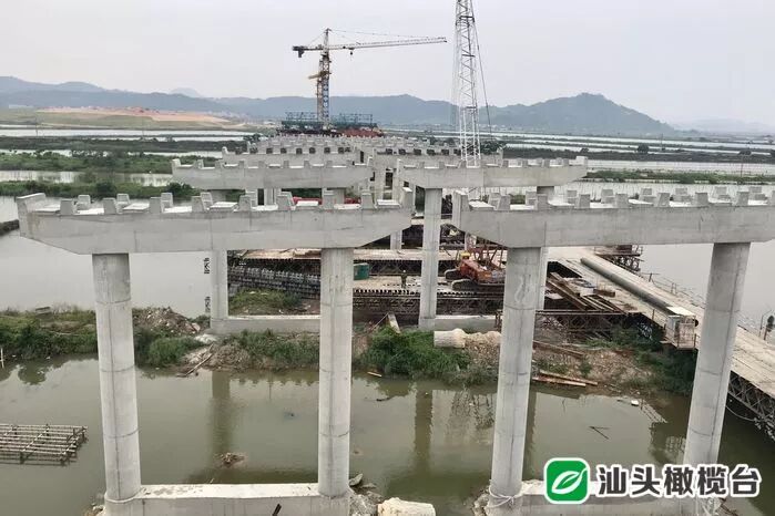 据汕揭项目党总支书记赵翔介绍,棉城河特大桥主桥上部结构为(39+62+39)m连续刚构,采用单箱双室变截面连续箱梁。目前,大桥主墩施工已基本完成,只剩下4个直线段和6个合拢段未施工,预计6月底全桥贯通。