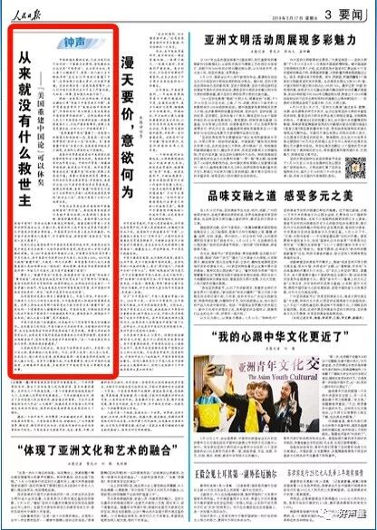 “美国重建中国论”暴露了一些美国人的傲慢无知和扭曲心态,是美国一些人根深蒂固的“救世主心态”的反映。自“美国重建中国论”出笼以来,在美国国内就没多少拥趸,在国际上得来的也只是嘲讽。