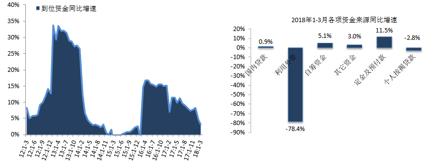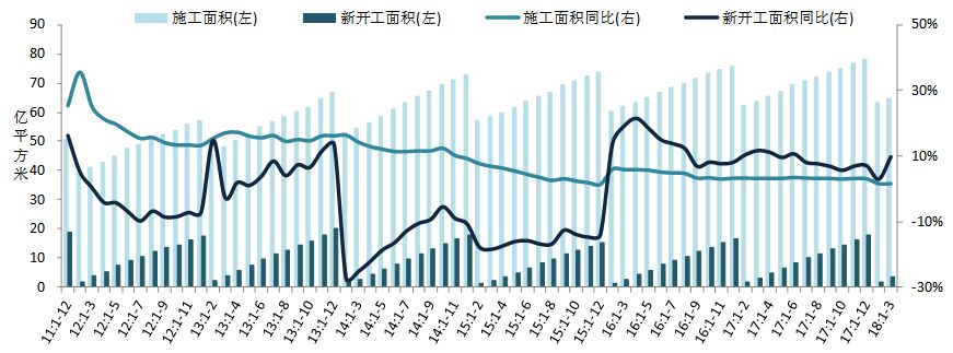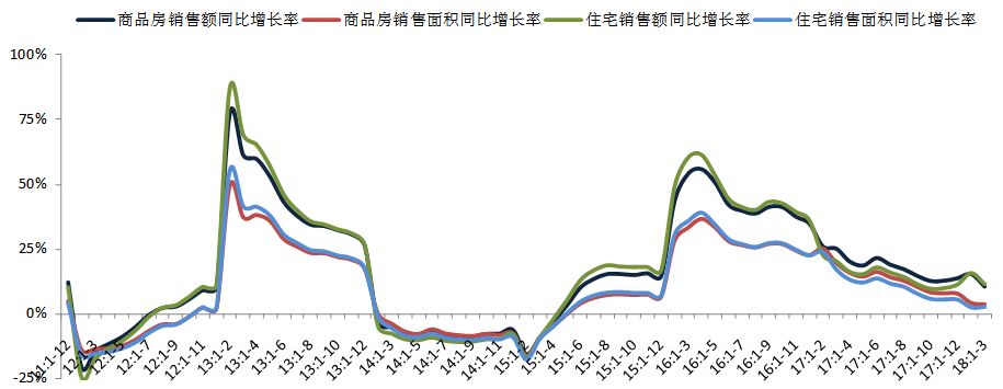 提示:点击上方"潮商"关注我们 一、需求:商品房销售面积同比增速持续回落,销售额同比显著收窄图:2011年至今全国商品房和住宅累计销售面积以及销售额同比增速 数据来源:CREIS中指数据,国家统计局 2018年1-3月,全国商品房销售面积为30088万平方米,同比增长3.6%,增幅较1-2月收窄0.5个百分点;销售额为25597亿元,同比增长10.4%,较1-2月收窄4.9个百分点。其中,住宅销售面积为26114万平方米,同比增长2.5%,销售额为21609亿元,同比增长11.4%;办公楼销售面积同比下降2.8%,销售额同比下降8.2%;商业营业用房销售面积同比增长9.6%,销售额同比增长7.9%。2018年政策调控持续深入,市场维持平稳发展,销售面积持续回落,销售额同比增速显著收窄。 二、供应:商品房投资额同比增速继续扩大,新开工同比增速提升图:2011年至今累计房地产和住宅开发投资及其同比增速 数据来源:CREIS中指数据,国家统计局 房地产开发投资额同比增速有所提升,住宅开发投资额占比有所扩大。2018年1-3月,全国房地产开发投资额为21291亿元,同比增长10.4%,增速较1-2月提升0.5个百分点。其中,住宅开发投资额为14705亿元,同比增长13.3%,增速较1-2月提升1个百分点,占房地产开发投资的比重为69.1%,占比较1-2月扩大1个百分点。 图:2011年至今全国房屋累计新开工和施工面积及其同比增速 数据来源:CREIS中指数据,国家统计局 全国新开工面积同比显著提升,房屋竣工面积同比降幅有所收窄。2018年1-3月,全国房屋新开工面积为34615万平方米,同比增长9.7%,增幅较1-2月扩大6.8个百分点;其中,住宅新开工面积为25531万平方米,同比增长12.2%,较1-2月扩大7.2个百分点。全国房屋施工面积达64.7亿平方米,同比增长1.5%,增幅与1-2月基本持平;其中,住宅施工面积为44.2亿平方米,同比增长1.9%,较1-2月扩大0.1个百分点。全国房屋竣工面积为20709万平方米,同比下降10.1%,降幅较1-2月收窄2个百分点;其中,住宅竣工面积为14198万平方米,同比下降14%,降幅较1-2月收窄3.1个百分点。 三、资金来源:房企到位资金同比增速继续回落,利用外资降幅持续扩大图:2012年至今全国开发企业到位资金同比增速及2018年1-3月各项资金来源同比增速 数据来源:CREIS中指数据,国家统计局 2018年1-3月,房地产开发企业到位资金为36770亿元,同比增长3.1%,增幅较1-2月收窄1.7个百分点。具体来看,国内贷款为6957亿元,同比增长0.9%,增幅较1-2月扩大0.6个百分点;利用外资为16亿元,同比下降78.4%;自筹资金为11449亿元,同比增长5.1%,增幅较1-2月收窄2.1个百分点;另外,其他资金来源中,定金及预付款为11130亿元,同比增长11.2%,增幅较1-2月收窄3个百分点,个人按揭贷款为5160亿元,同比下降6.8%,降幅较1-2月扩大2.5个百分点。房地产市场金融监管明显加强,信贷政策收紧,企业融资难度也将升级,房企资金面压力加剧。 2018年1-3月,在开发企业各类资金来源中,国内贷款占比18.9%,较1-2月收窄1.9个百分点。自筹资金占比31.1%,较1-2月扩大0.3个百分点。利用外资占比0.04%,较1-2月下降0.06个百分点。其他资金占比49.9%,较1-2月扩大1.6个百分点,其中,定金及预付款占比30.3%,较1-2月扩大1.2个百分点;个人按揭贷款占比14%,较1-2月扩大0.5个百分点。 需求方面,2018年是长效机制落地的关键年份,市场维持平稳运行,商品房销售面积同比增速持续回落,销售额同比显著收窄。供应方面,商品房开发投资额同比增速略有扩大,新开工同比增速显著提升。资金来源方面,货币政策中性偏紧,房企融资压力持续加大,到位资金同比继续收窄。展望未来,一方面热点城市调控政策依然从紧,市场继续向下调整;另一方面,随着棚改边际效应的递减以及调控政策进一步深入,三四线城市房地产市场热度也将继续降温。同时,货币政策中性偏紧,房企融资压力持续加大。预计未来商品房销售面积增速将继续回落。 来源 | 中国指数研究院 文化的境界 · 财富的智慧