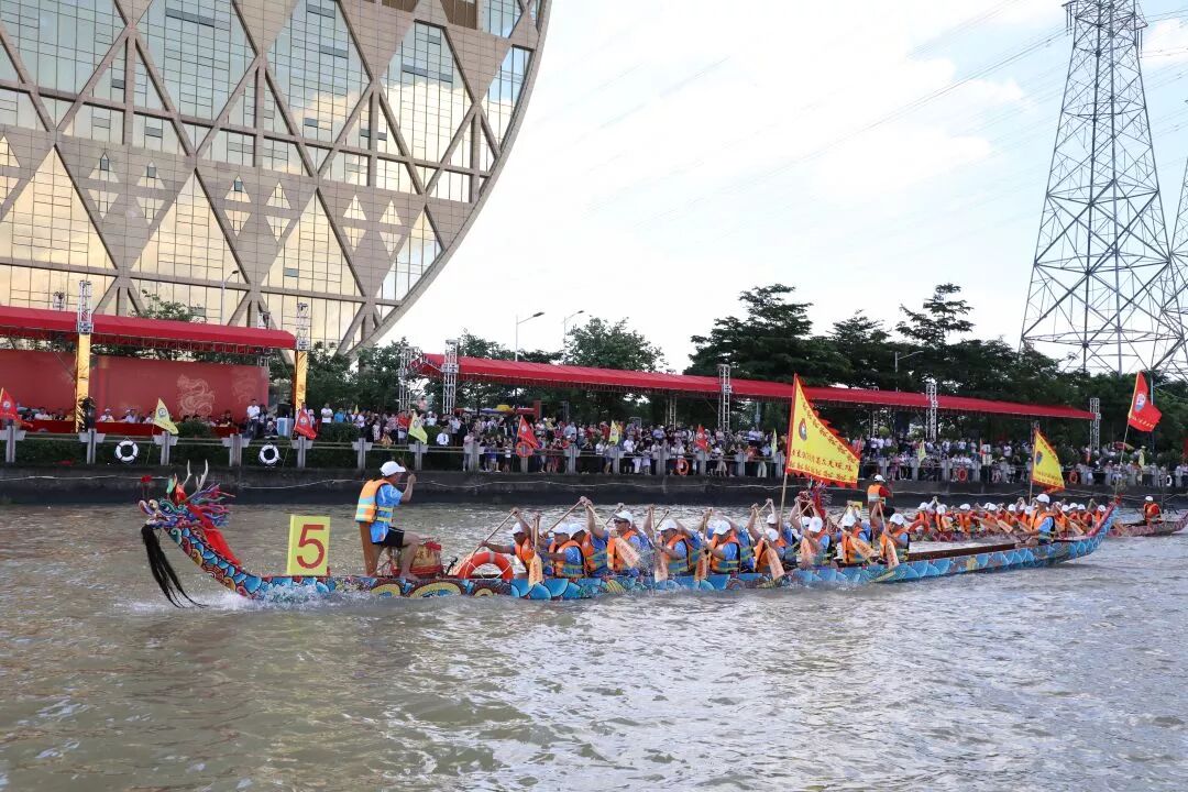 ![]() 仲夏时节,万物并秀。珠江两岸彩旗飘扬,锣鼓喧天,人如潮涌,到处洋溢着节日的气氛。6月7日下午,广东省潮商会在广州圆大厦前珠江沿段隆重举行“2019年广东省潮商会游龙赛”。参加活动的嘉宾有:广东省委原副书记蔡东士,广州军区原副政委张汝成,广东省人民政府原副省长许德立,广东省人大常委会原副主任黄伟鸿,广东省民政厅原党组成员、副厅长王长胜,广东省民政厅办公室主任徐祖平,广东省民政厅副处长李志华,广州市组织部原副部长许鸿基,广东省潮商会高级顾问罗林竹,广东省潮商会名誉会长周修侠、李廷家、林木治、范思斌、马灶雄以及广东省潮人海外联谊会、北京潮商会、广东省揭阳商会、广东省潮州商会、广东潮博智库、清华广东校友会等社团代表。本会出席游龙赛的有会长周奕丰,常务副会长林喜七、周昭庭、陈镇雄、张惜元、周泽滨、林钟龙、陈景良、周乐伦、连俊江、欧先涛,秘书长周勇强以及商会的副会长、常务理事、理事、会员、潮青等嘉宾朋友们近2000人。 ![]() 主席台 下午三点半,喜庆祥和、恢弘大气的潮州大锣鼓拉开游龙赛序幕,广东省潮商会龙舟队、鸿达兴业集团龙舟队、广东红八方集团龙舟队、十一兄弟龙舟队、广东潮商国际高尔夫龙舟队以及广东省潮商会新塘纺织商会龙舟队,6支龙舟队在激昂有力的乐声中、在雷鸣般的掌声中登台亮相。他们意气风发、精神抖擞,迈着整齐有力的步伐,既为我们展示了昂扬向上的运动健儿风采,也凸显了团结奋进的潮商形象。今年的游龙赛,还邀请了广州圆大厦附近9支龙舟代表队一同参赛,旨在传承中华优秀传统文化,弘扬爱国主义和集体主义精神。通过龙舟竞技,加强互动交流,营造积极健康、奋发向上的人文氛围。 ![]() 周奕丰会长在游龙赛上致辞 广东省潮商会周奕丰会长在游龙赛上致辞。周奕丰会长首先对大家的到来表示热烈的欢迎!两千多年来,端午节作为中华民族古老的传统节日,在全国乃至全球华人影响深远,蕴含着深厚的文化内涵,代代相传,生生不息,体现了中华民族同舟共济、爱国主义的民族精神。党的十九大报告中指出,深入挖掘中华优秀传统文化蕴含的思想观念、人文精神、道德规范,结合时代要求继承创新,让中华文化展现出魅力和时代风采。激发了我们对优秀传统文化的认识和弘扬热情。为弘扬中华优秀传统文化,传承龙舟精神,广东省潮商会连续在广州举办了两届龙舟赛,今年是第三届,将龙舟从潮汕练江、韩江、榕江扒到珠江,广大会员朋友在亲近和传承传统文化的过程中体验节日习俗,感受传统文化的魅力。通过参与和感受龙舟文化,牢固树立文化自信,热爱祖国,为加快实现民族伟大复兴贡献力量。 ![]() 广东省委原副书记蔡东士宣布开赛 随后,广东省委原副书记蔡东士按下启动枪,宣布游龙赛正式开始,振奋人心的游龙赛随之拉开序幕!广州圆,珠江畔,弄潮健儿劈波斩浪,上演了一场百舸争流的精彩赛事。游龙赛分三轮进行,在第一轮的出场环节,各个队伍在鼓手铿锵有力的指挥下,队员们整齐划一,破浪前行。随之而来的第二轮游龙,鼓声如雷凌波回荡,健儿们奋力挥桨,龙舟如离弦之箭,在阳光下极速前进,龙舟队你追我赶,场面一派壮观。第三轮的游龙表演,各个队伍愈战愈勇,桡手奋力挥臂,劈波斩浪,在奋进的鼓声中,江面激起了千层浪,各参赛队伍把全力以赴、力争上游的竞技精神表现的酣畅淋漓。在压轴环节,广东省潮商会龙舟队、鸿达兴业集团龙舟队、广东红八方集团龙舟队、十一兄弟龙舟队、广东潮商国际高尔夫龙舟队、广东省潮商会新塘纺织商会龙舟队展开竞技,六条龙舟破浪前行,势如利剑,他们劈波斩浪于浩瀚的珠江上,为大家上演了百舸争路、千帆竞渡的激烈场面。经过激烈角逐,广东省潮商会拔得头筹,获得第一名,十一兄弟龙舟队、广东潮商国际高尔夫龙舟队分别获得第二名、第三名。 ![]() 群龙竞渡 游龙赛的精彩表演吸引了大批观众前来观看,岸上人山人海,现场鞭炮声、加油声、欢呼声、呐喊声交汇在一起,在江面上回荡,震耳欲聋,场面热烈壮观。 ![]() 鸣锣开席 “龙船鼓声起,端午节味浓”,扒龙舟、吃粽子、吃龙舟饭,广州圆大厦一派热闹喜悦的景象,到处洋溢着欢乐祥和的气氛。在热烈的游龙赛结束后,广东省潮商会在广州圆大厦一楼筵开190围八仙桌,宴请嘉宾、会员朋友及参加游龙的龙舟队代表。广东省潮商会周奕丰会长在宴席上致祝酒词,并率领商会的常务副会长、秘书长鸣锣宣布开席,与现场来宾举杯共贺,场面热闹温馨。“吃过龙舟饭,喝过龙舟酒,共祈风调雨顺、五谷丰登、阖家安康。”当晚还举行了颁奖仪式,分别为游龙赛的赞助单位颁发龙舟标、纪念奖;为参赛的队伍颁发锦旗和奖金。本次游龙赛同样制作了一批精美的“龙舟标”,内容分别有:新时代、天地人和、福瑞祥和、吉祥如意、千帆竞发、百业兴旺、马到功成、双龙夺珠、三元报喜、四海升平、五谷丰登、六六大顺。龙舟标邀请了潮汕名人贤士蔡东士、明生大和尚、许鸿基、罗林竹题字,国家级潮州木雕传承人辜柳希大师执刀,也是游龙赛的一大特色。 赛龙夺锦,不仅是一种民俗节庆活动,也代表着一种精神。广东省潮商会举办游龙赛,是商会传承弘扬中华优秀文化的一大盛事,体现了潮商同舟共济,团结互助,锐意进取的精神。通过龙舟活动,增强凝