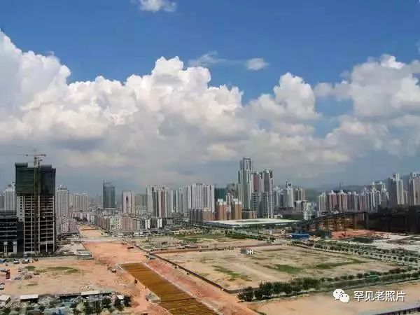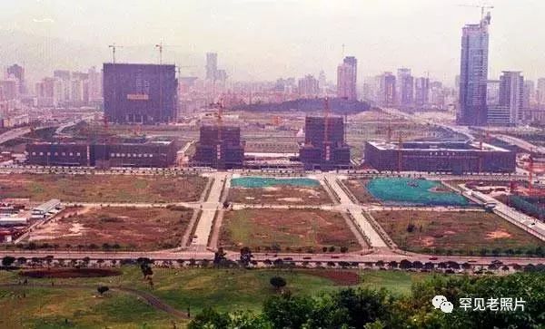 2003年,深圳,在信息枢纽大厦上拍摄的福田CBD工地(右为建设中的会展中心,右上远处为联合广场)。