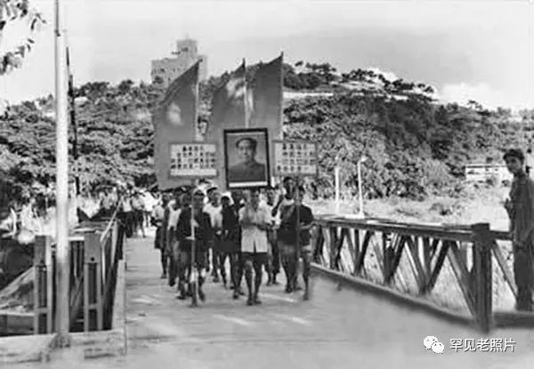 1950年代,深圳,罗湖桥头。郑中建/摄。 罗湖桥至九龙段由英方修建,也是西方列强侵略我国的通道。香港回归之后,深港两地重建新罗湖桥,原百年老桥整体移至香港一侧,作为文物永久安置。
