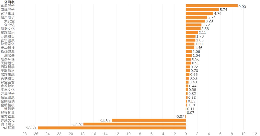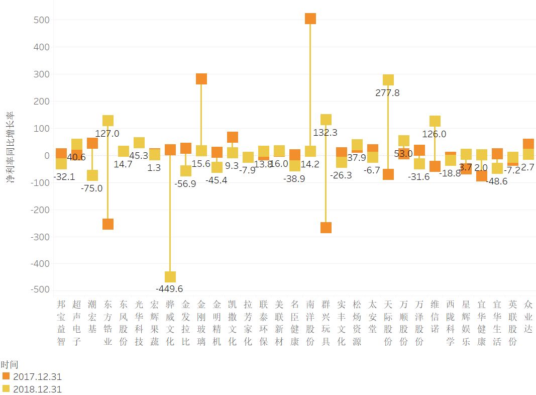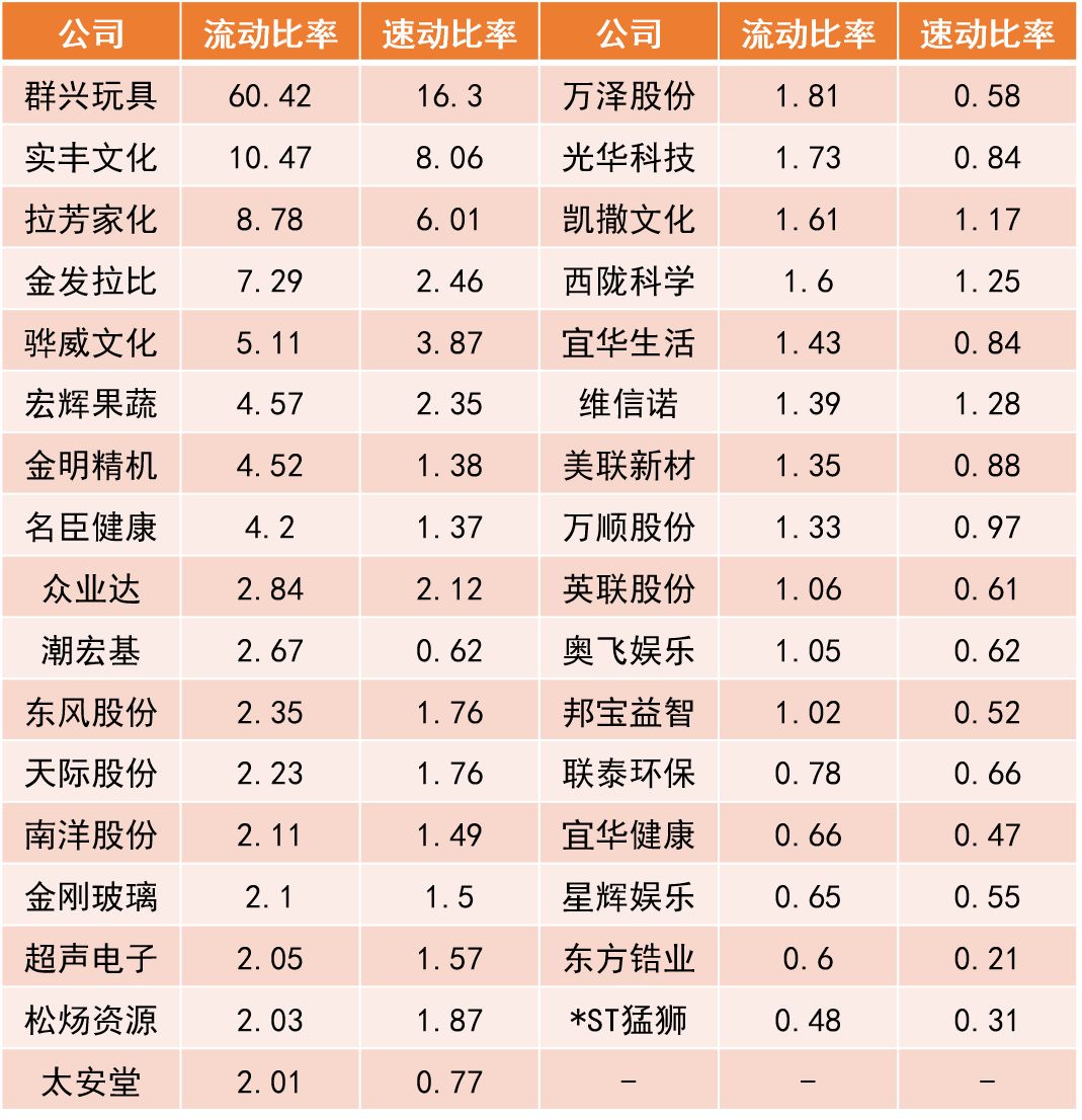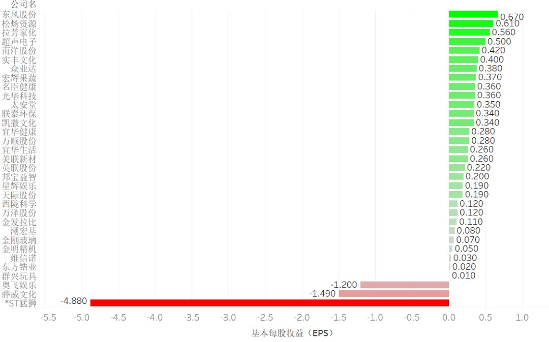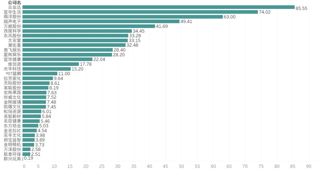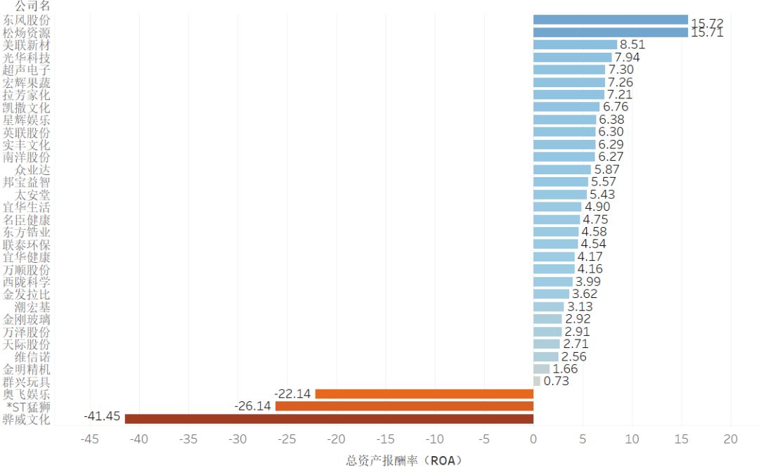 提示:点击上方"潮商"关注我们 ![]() 总体概述 目前公司注册地在汕头的A股和港股上市公司有33家,分布在23个行业当中。其中,国资控股性质企业有3家,分别是超声电子、东方锆业、金明精机,占总数的9.09%,其余全为民营企业,占总数的90.91%。 ![]() 汕头上市公司行业分布气泡图 单位:间 在近2年的时间里,有4家企业进行了实控人变更。 ![]() 实控人变更信息表 2 资产与债务 依据汕头上市企业2018年财务报表,资产负债率达到100.87%的*ST猛狮已经出现了资不抵债的风险。联泰环保、宜华健康的资产负债率均超过60%需要警惕。东方锆业、万顺股份、星辉娱乐等11家企业的资产负债率则保持在40%-60%的合理区间,其余的资产负债率均在40%以下。 ![]() 汕头上市公司2018年资产负债率 单位:% 从速动比率和流动比率看企业偿债能力。有15家企业的流动比率>2且速动比率>1,说明这15家企业的短期偿债能力和最快速清偿能力良好。 ![]() 汕头上市公司速动比率、流动比率表 单位:% 3 营收情况 从2018年企业的营收收入看,汕头的上市公司2018年营业收入规模均未超过百亿规模。营业收入超过50亿元规模有3家,30-50亿元规模6家,10-30亿元规模6家,其余18家营业收入规模均在10亿元以下。 ![]() 汕头上市公司2018年营业收入 单位:亿元 2018年汕头上市公司的营业利润均在10亿元规模以下。排名第一的东风股份,营业利润9亿元,超过排名第二的南洋股份(5.74亿元)接近1倍。 同时有4家上市公司出现了亏损,亏损总额达到56.21亿元,比其余29家盈利企业的营业利润总额49.42亿元还要多,相当于亏光6.25个东风股份的营业利润。 ![]() 汕头上市公司2018年营业利润 单位:亿元 4 盈利情况 企业的盈利能力高低和企业生意模式、企业管理成本有直接关系。企业生意好做同时运营成本又控制好,企业的盈利能力自然就高。我们可以从销售毛利率、营业利润率、销售净利率和营业费用率3个财报数据一窥究竟。 从下图看,销售毛利率>30%的企业有14家,但营业利润率超过10%只有6家。可以看出有着不错的营业利润率的企业,其营业费用率都相对会低很多。 例如,拉芳家化的销售毛利率60.44%,排名第一,但营业利润率却只有15.6%,同时营业费用率高达41.83%。东风股份有不错的销售毛利率(38.63%),同时营业费用率只有10.26%,因此营业利润率(27.1%)和销售净利率(22.8%)都表现不错。 ![]() 汕头上市公司2018年销售毛利率、营业利润率、销售净利率和营业费用率 单位:% 5 市场应对情况 经营安全边际率可以看出代表企业是否有较宽裕的获利空间,即使面临突如其来的市场波动,也将比其他竞争对手具有较高的抵抗能力。 现金流量比率可以看出企业的财务弹性。现金流量比率越高财务弹性越好,面对市场环境突变也有足够的现金可以应对,避免资金链断裂。 企业的经营安全边际率>60%才属于安全值范围。2018年汕头上市企业经营安全边际率>60%的企业有7家,占总数的21.21%。 ![]() 汕头上市公司2018年经营安全边际率 单位:% 一般认为现金流量比率高于50%较为正常,低于50%则需预警。从图中可以看出现金流量比率>50%的企业只有4家,占总数的12.12%。 ![]() 汕头上市公司2018年现金流量比率 单位:% 6 营收和净利润增长情况 从企业的营业收入同比增长率看,相较于2017年营业收入同比增长率,2018年有22家企业的营业收入增长放缓,其中7家企业还出现了负增长。同时有9家企业的营业收入在持续增长。(维信诺、松炀资源未列入统计) ![]() 汕头上市公司2017、2018年营业收入增长率 单位:% 从2017年、2018年的净利润同比增长率看,2018年有17家企业的净利润增长放缓,其中有10家企业净利润同比增长出现负增长,*ST猛狮和奥飞娱乐2018年净利润同比增长分别达到了-1964%和-1909%(这2家数据未在下面图中体现);有11家企业的净利润增长速度明显加快,东方锆业、群兴玩具、天际股份的净利润都有大幅增长。 ![]() 汕头上市公司2017、2018年净利润增长率 单位:% 7 投资收益 2018年企业基本每股收益,东风股份基本每股收益达到了0.67元,排名第一,紧随其后的拉芳家化、超声电子、南洋股份基本每股收益也都不错。奥飞动漫、骅威文化、*ST猛狮基本每股收益惨不忍睹。 ![]() 汕头上市公司2018年基本每股收益 单位:元 2018年总资产投资报酬率,东风股份依旧排名第一,总资产报酬率为15.72%;总资产报酬率为负数的企业依旧是奥飞动漫、骅威文化、*ST猛狮。 ![]() 汕头上市公司2018年总资产报酬率 单位:% 8 2018年分红方案 2018年,汕头上市企业有19家实现了分红或转股,有6家企业不分配不转赠。 ![]() 汕头上市公司2018年分红方案表 来源:华侨大数据 声明:本文不代表我们的观点,仅供读者参考。文章版权归原作者所有,如有侵权,请联系我们进行删除。 潮 商 文化的境界 · 财富的智慧