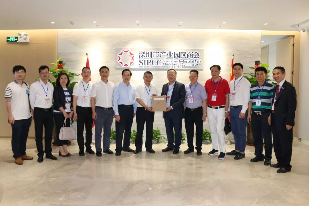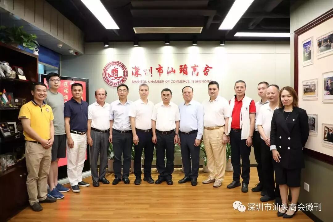 集体合影 2019年6月28日,在圆满举办了《汕头保税区深圳招商推介会暨项目集中签约仪式》,汕头保税区管委会陈胜全书记一行专程到深圳市产业园区商会办公室与佘桂锡会长交流,商会执行会长黄海津,常务副会长吴楚丰、马炜标、杨育彬、常务副会长单位代表林灿彬总经理,名誉会长吴楚强、吴银文、吴建东、罗卓然,副会长芮楚发,副会长兼秘书长蔡淳林等热情接待。