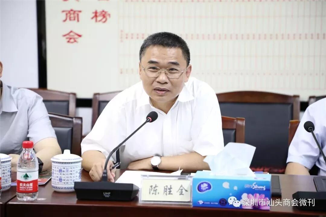 陈胜全书记在深圳市汕头商会会谈上发言 陈胜全书记对深圳市汕头商会各位领导能抽空出席接待表示感谢。他表示,很荣幸能够代表汕头保税区来深圳开展招商推介暨项目集中签约仪式。他介绍道,汕头保税区是国家第一批批准认可的保税区,预示着国家对汕头改革开放发展的重视。近几年,汕头保税区开展贯彻落实市委市政府工作部署,突出保税功能,做大保税主业,积极开展各项工作。目前,保税区“三大平台,六大中心”项目建设进展顺利,保税区扩围工作稳步推进,截至目前已有若干家企业陆续入驻汕头保税区,其中就包括深圳海源恒业控股集团、宝能物流集团、汕头保税区领域跨境电子商务有限公司、汕头市中海信投资有限公司、康泽药业股份有限公司在内的多家优秀企业。 最后,陈书记在会上表示,深圳作为一座经济高速发展的城市,期望年轻的潮籍企业家能多回家乡发展建设,共同为两地经济谋取更多的利益。