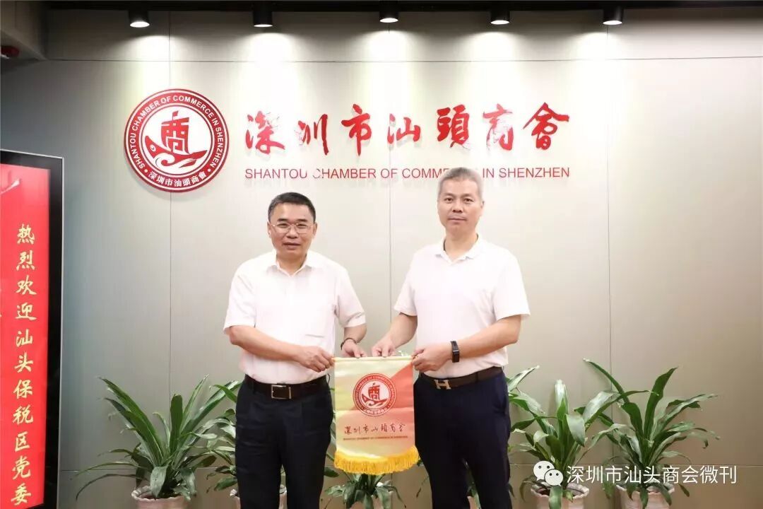 2019年6月27日,汕头保税区党委书记、管委会主任陈胜全一行到深圳,向各界乡贤交流推介汕头保税区最新规划发展进程,邀请旅深潮籍企业家回汕考察访问,投资兴业。随同访问的有汕头保税区管委会副主任欧阳升、刘伟皓,办公室主任林航,经发局局长吴晓阳等。 深圳市产业园区商会会长佘桂锡大力支持家乡经济转型发展,专程陪同陈胜全书记一行走访深圳潮属社团商会。副会长兼秘书长蔡淳林随行访问。 访问潮汕商会