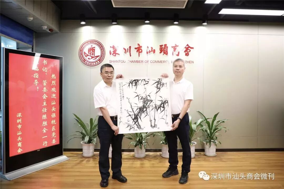 双方互赠礼品 走访深圳市汕头商会