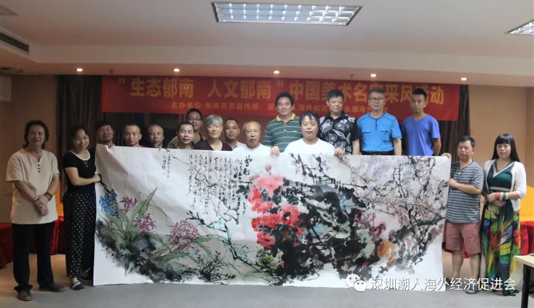 为庆祝中华人民共和国成立70周年,深入贯彻落实党的十九大会议和习近平总书记关于传承弘扬优秀传统文化系列讲话精神,助力郁南乡村振兴和文化旅游融合发展,2019年7月15日至22日,由云浮市郁南县人民政府、中共郁南县委宣传部指导,郁南县文化广电旅游体育局、县文联与深圳潮人海外经济促进会潮海艺术院联合主办的“生态郁南·人文郁南”--中国美术名家采风活动在郁南县盛大举行。 中国画学会创会理事李照东,广东《美术观察》杂志社主编羊草,清华大学中国画高研班导师马顺先,揭阳画院院长王佩嵩,汕头市油画院院长方声涛,述古堂美术馆名誉馆长陈世平,本会常务副会长、潮海艺术院院长林楚东,云浮美术家协会主席叶仲桥,美国中国画会深圳分会主任林泽鹏,“含真阁”阁主、收藏家郭泽强,本会副会长兼执行秘书长、书画家林茂辉,著名画家罗洪东,省青年美协理事李丽娜,普宁市德安里美术馆长、书画家连晓平等一行组成美术写生团赴郁南县参加此次活动,为建设美丽新郁南添上浓墨重彩的一笔。 ![]()