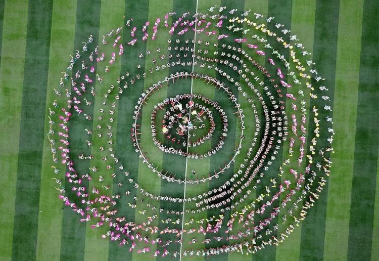 在广西融水苗族自治县民族体育公园,当地群众和宾客一起欢跳芦笙踩堂舞(2017年11月18日无人机拍摄)。新华社记者 张爱林 摄