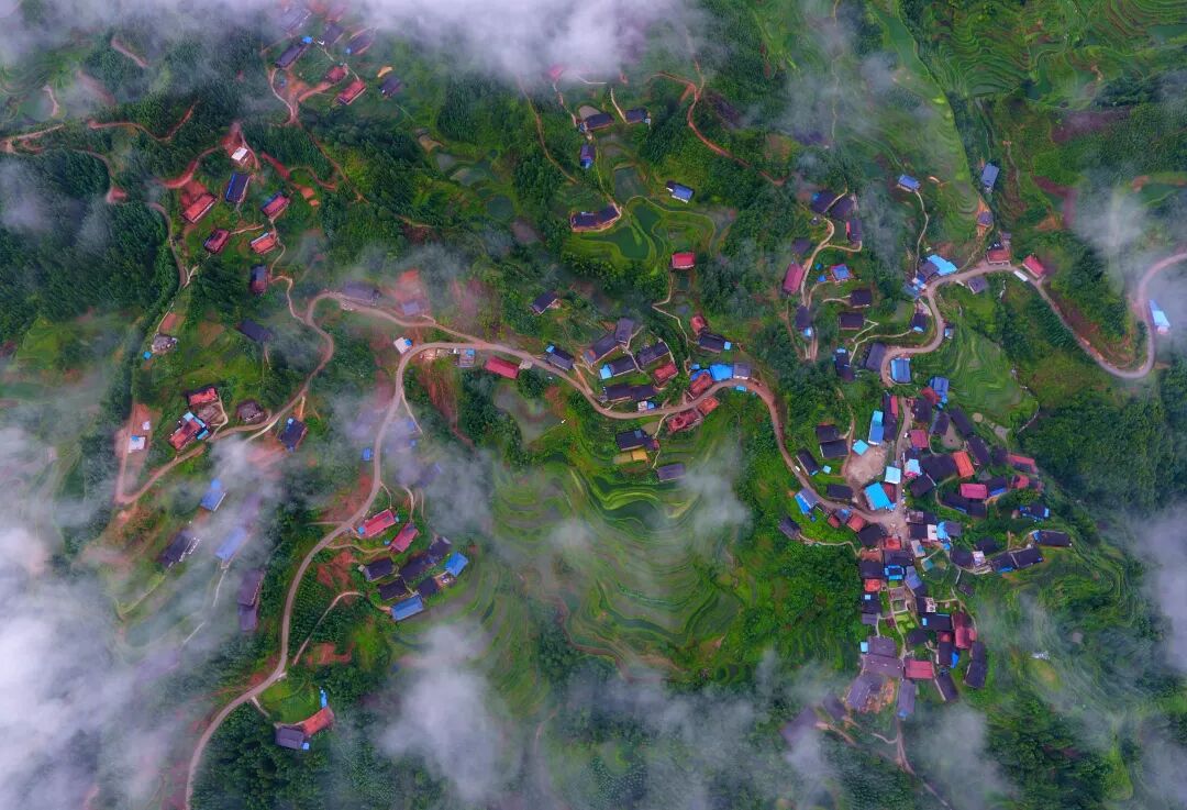 这是广西融水苗族自治县杆洞乡党鸠苗寨(7月7日无人机拍摄)。新华社记者 黄孝邦 摄