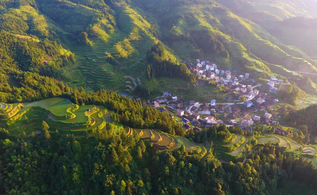 这是广西融水苗族自治县杆洞乡杆洞村的梯田(5月23日无人机拍摄)。新华社记者 黄孝邦 摄