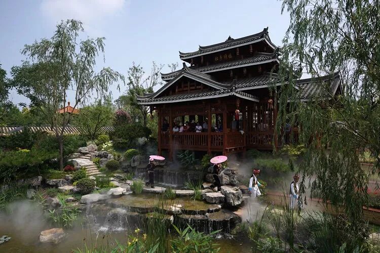 7月18日,游客在北京世园会广西园内参观。新华社记者 鞠焕宗 摄