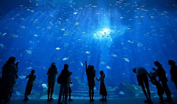 游客在三亚亚特兰蒂斯水族馆游玩(2018年8月3日摄)。新华社记者 郭程 摄