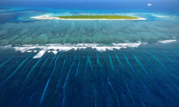 一条船驶入西沙晋卿岛的航道(2017年4月23日无人机拍摄)。新华社记者 郭程 摄