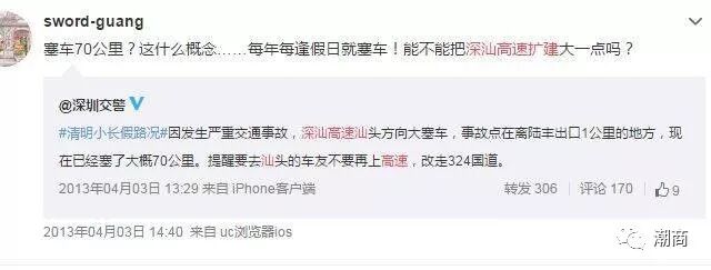 一到节假日就塞到晕,堵到哭 深汕高速,这条往返潮汕与珠三角之间的交通要道每到逢年过节时候总是堵得一塌糊涂。 从汕头开车11小时才到深圳”“春节期间深汕高速堵哭了”提起深汕高速的行车难,特别是节假日的行车难,往来深圳和粤东潮汕地区的司机朋友总是痛苦不堪。深汕高速公路起点于深圳市龙岗区荷坳街道,经惠州市、汕尾市、揭阳市,终点于汕头市龙湖区。 深汕高速是沈海高速的重要组成部分,于 1996 年底建成通车,目前运营近 20 年,期间全线路面曾经大修。目前,深汕高速为双向 4 车道,设计行车速度为 100 公里 / 小时。