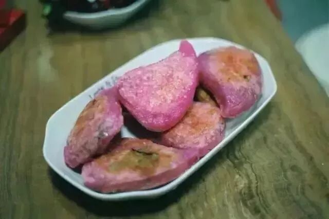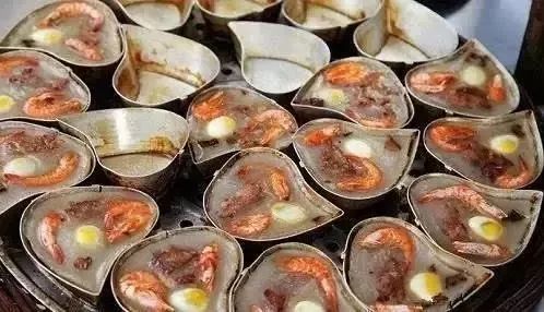 < 菜头粿 > 菜头粿,也就是萝卜糕。 菜头是萝卜的俗名,寓意“彩头” ![]() 食用时将菜头粿切块, 下锅用油煎至呈金黄色即成。 外酥内嫩,味道清香不甜腻。 ![]() <荷兰薯粿> 荷兰薯粿也叫共同粿。 ![]() 制作时,将马铃薯蒸熟压烂, 加入香菇、虾米、腊肠、胡椒粉等和成团, 然后做成条状蒸熟, 切片用油煎至金黄色。 沾上辣椒酱,十分香脆。 < 鲎粿 > 鲎粿以潮阳棉城的最出名。