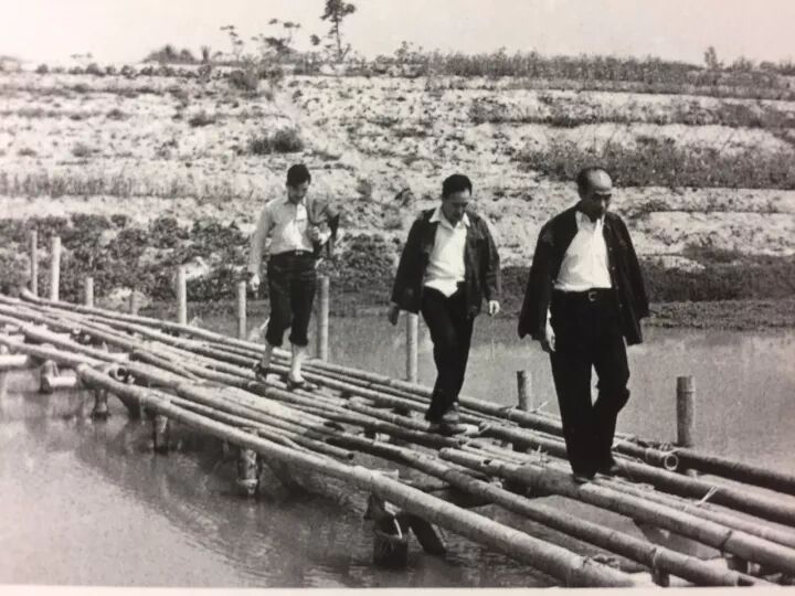在加工区的正中央,还有一条纯天然的长长小沟渠。说小也不小,一只脚跨不过去,但又非过不可,人们在水面上架起了简易竹桥。领导带着工人们穿着胶底布鞋和,肩上扛着图纸,从桥上一晃一晃的走到对面的荒地上。