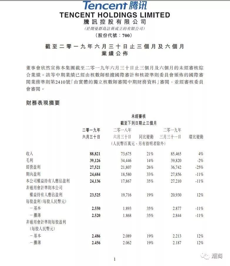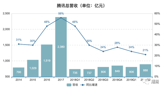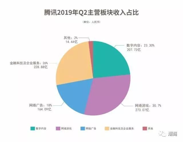 提示:点击上方"潮商"关注我们 日前,腾讯控股发布了2019年第二季度财报。财报显示,腾讯第二季度实现收入888.21亿元,同比增长21%,净利润241.36亿元人民币,同比增长35%。 ![]() 投资速度放缓,营销开支缩减,但游戏业绩回暖,净利润高于市场预期,金融科技及企业服务已然成为公司第二大收入来源,这是腾讯2019年Q2季度的整体表现。 作为腾讯收入占比的大头,Q2季度腾讯游戏收入总额为273亿元,占腾讯总收入比例为31%,同比增长8%,但环比下降4%,其中智能手机游戏收入为222亿元,同比增长26%,受淡季影响,PC端游戏收入下降9%。 金融科技及企业服务的总收入为228.88亿人民币,同比增长37%。今年一季度,腾讯首次公布该板块收入,包括腾讯的支付、企业服务等业务,如今已超过网络广告板块,成为腾讯第二大收入来源,占总收入的比例为26%。 2019年上半年,腾讯公司收入1742.86亿元,同比增长 18%,实现净利润513.46亿元,同比增长25%,较为利好。但上半年,腾讯新收购联营公司和增加对现有联营公司的投资共计 84.59亿元,去年同期,这一数字为319.76亿元。 ![]() 这意味着腾讯对外投资的速度有所放缓。在Q2季度财报电话会上,腾讯方面表示,过去10年腾讯比较积极地在做上有投资,类似游戏工作室、视频制作等,现在更多去参与金融技术、教育技术等方面,“相对于去年,我们会更加谨慎投资”。 ![]() 第二季,我们在用户、收入及盈利方面保持稳健的增长,并在充满挑战性的商业环境下实施了多项举措。 ——腾讯CEO马化腾 整体来看,自第三次组织架构调整以来,伴随着业务方向转移,腾讯的收入结构也愈发多元化。 ![]() 游戏“王者归来” Q2季度,国内游戏“王者”腾讯重新归来,其中手机游戏同比增长26%。 具体财务数据上,腾讯Q2季度网络游戏收入总额为273亿元。智能手机游戏收入(包括社交网络业务的智能手机游戏收入)同比增长26%至人民币222亿元。 资料显示,当前手游市场暑期强劲复苏,但是几乎完全被腾讯统治。目前iOS游戏畅销榜出现了罕见的一幕:前4名全部被腾讯游戏占据。腾讯再次证明了自己的游戏导流能力。 ![]() Q2季度,腾讯在网络游戏之外也加强自身实力。6月5日,腾讯游戏和华硕正式达成合作,将在中国大陆地区进行游戏手机方面的深度合作。7月22日,腾讯宣布与任天堂合作,计划在中国市场销售任天堂的主力游戏机。7月29日,高通与腾讯宣布合作联合开发游戏手机。 在政策平稳的环境下,腾讯保持国内游戏业领先的实力。 微信月活11.33亿 Q2季度,微信及WeChat的合并月活跃账户数达11.33亿,同比增长7%。QQ的智能终端月活跃账户数为7.07亿,相比去年同期大致保持稳定。在社交领域,腾讯也目前仍没有敌手。 ![]() 依托微信,腾讯已经在微信内已经建立一个完整的生态,打通小程序、微信支付等产业链。 2019微信广告小程序流量主大会上,微信团队表示,与去年同期相比,小程序周使用次数增长70%,人均使用个数增长率高达156%,人均分享个数和人均支付人数也分别达到了38%和109%的增长率。并且,微信小程序在中老年用户及三四线城市渗透更为深入,50岁以上使用小程序的用户增加22%。 2B收入占比26% 上个季度,腾讯把以前归属“其他”业务的支付和云计算业务,单独列出来,突出其2B业务的地位。 Q2季度,腾讯金融科技及企业服务收入为229亿元,同比增长37%。在腾讯总收入中,此类别收入占比为26%。撇除备付金余额的利息收入,金融科技及企业服务收入同比增长57%。 金融科技方面,腾讯主要是理财通业务。二季度财报数据显示,“理财通”的总客户资产达人民币8000亿元,去年年底数据为6000亿元。截至2018年底,腾讯理财通总用户量超1.5亿。 腾讯财报显示,用户越来越多地将资金留存在腾讯支付系统内。腾讯认为,“该趋势降低了用户使用我们支付系统的资金流转成本,减少了我们的提现收入及银行手续费。” ![]() 腾讯企业服务主要是腾讯云。Q2季度,腾讯云与中国人民保险集团、交通银行及海通证券等签约,并推出基于云的WeCity未来城市解决方案,在包括长沙在内的多个城市为公共服务提供智慧产业解决方案支持,例如医疗保健、交通及教育。 腾讯云目前在中国公有云IaaS市场排名第二,并在全球市场位列前十。截至目前,腾讯云的基础设施已经覆盖全球五大洲25个地区,运营53个可用区。 付费用户增至1.689亿 Q2季度,腾讯社交网络增长23%至人民币207.73亿元,主要是数字内容服务(如直播服务及视频流媒体订购)收入的增加。 腾讯的付费用户数量本季度增至1.689亿,增长10%,主要受视频及音乐服务订购数增加带动。其中,腾讯视频订购账户数同比增长30%至9690万。与竞争对手已经过亿的会员数相比,腾讯视频仍有增长空间。此外,Q2季度腾讯宣布与NBA延长五年合作关系,这也将有助于之后腾讯视频的付费收入。 ![]() 资料来源:经济观察网、极客公园 声明:本文不代表我们的观点,仅供读者参考。文章版权归原作者所有,如有侵权,请联系我们进行删除。 潮 商 文化的境界 · 财富的智慧