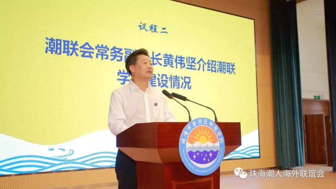 珠海潮人海外联谊会常务副会长黄伟坚介绍潮联学校建设情况