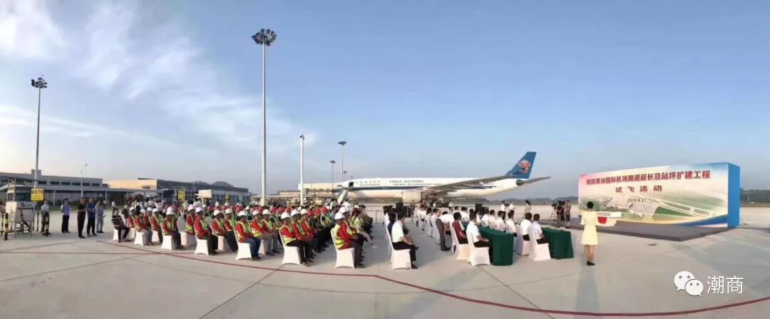 提示:点击上方"潮商"关注我们 今天上午,揭阳潮汕国际机场跑道延长及站坪扩建工程试飞活动举行,空客330安全落地,宣告着揭阳潮汕国际机场喜迎发展新阶段。 ![]()