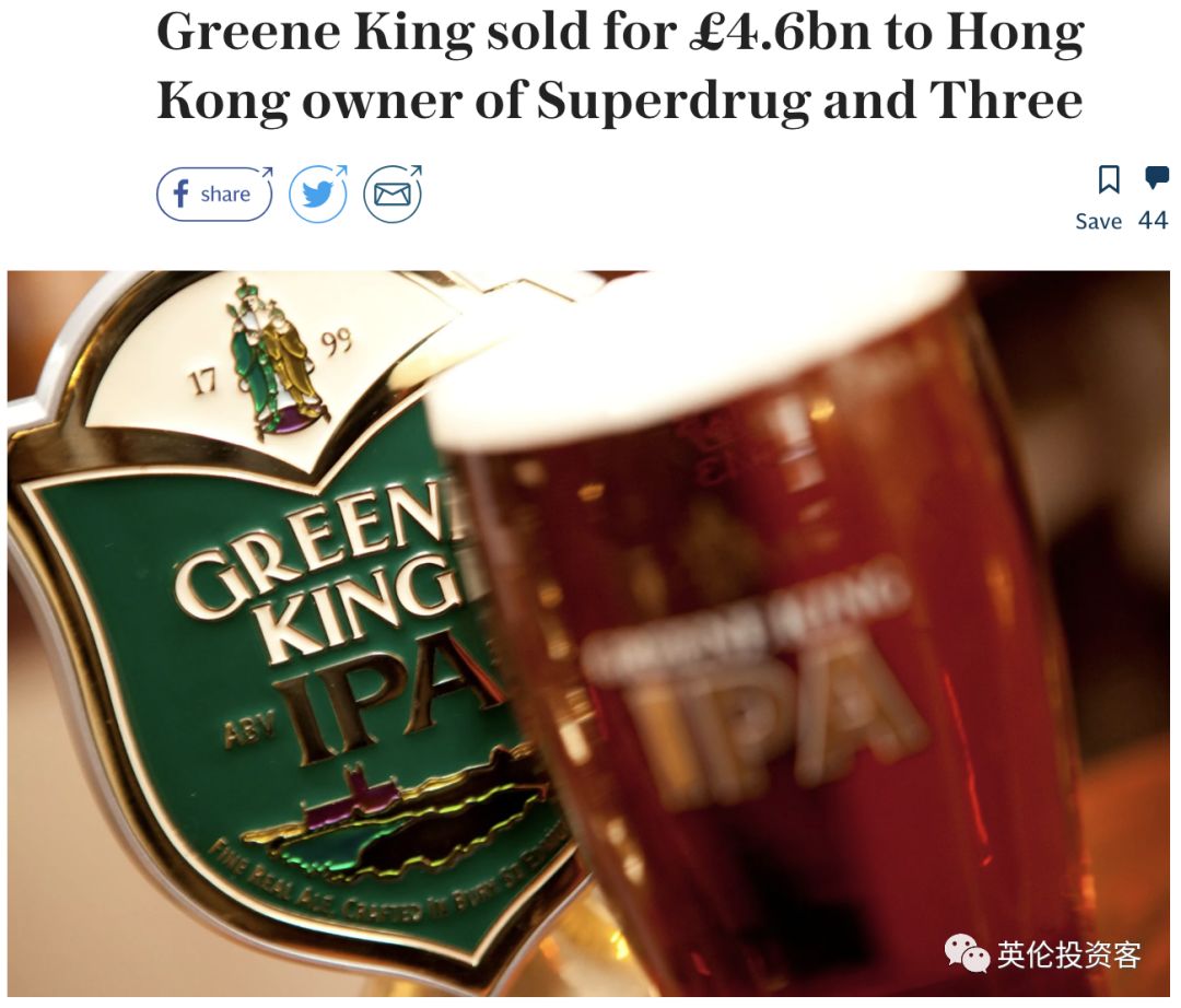 《每日电讯报》:Greene King以46亿英镑的价格,被出售给香港老板