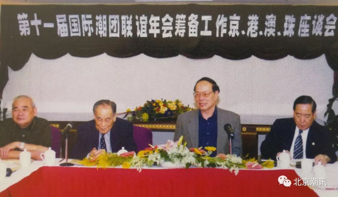2000年6月9-10日,第十一届国际潮团联谊年会筹备工作京、港、澳、珠座谈会在珠海举行。我会名誉会长庄世平(左二)、会长蔡诚(右二)出席 上任北京潮人海外联谊会会长伊始,蔡诚即提出申办第十一届国际潮团联谊年会,并作为本届理事会的头等大事。蔡诚把握形势,抓住机遇,统一思想,排除万难,创造条件,亲力亲为,动用一切可以使用的关系,竭尽一切可以利用的资源,走遍一切必须走到的地方,在庄世平、李嘉诚、林百欣、唐学元、许伟等先生的鼎力帮助和香港、澳门、广东、深圳、珠海等兄弟潮团的支持下,终于成功申办、筹办、举办了第十一届国际潮团联谊年会,在国际潮团史上留下了最为壮美的篇章,令全球潮团三千代表为之开眼、无比自豪。
