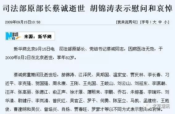 蔡诚,广东普宁人,司法部原部长、党组书记,第13届中共中央委员,曾担任北京潮人海外联谊会会长、荣誉会长,第十一届国际潮团联谊年会主席、国际潮团联谊年会永远荣誉主席等职。2009年9月2日,蔡诚部长因病医治无效在北京逝世,享年82岁。据新华社发布的消息,蔡诚病重期间及逝世后,胡锦涛、江泽民等党和国家领导人以不同方式表示慰问和哀悼。