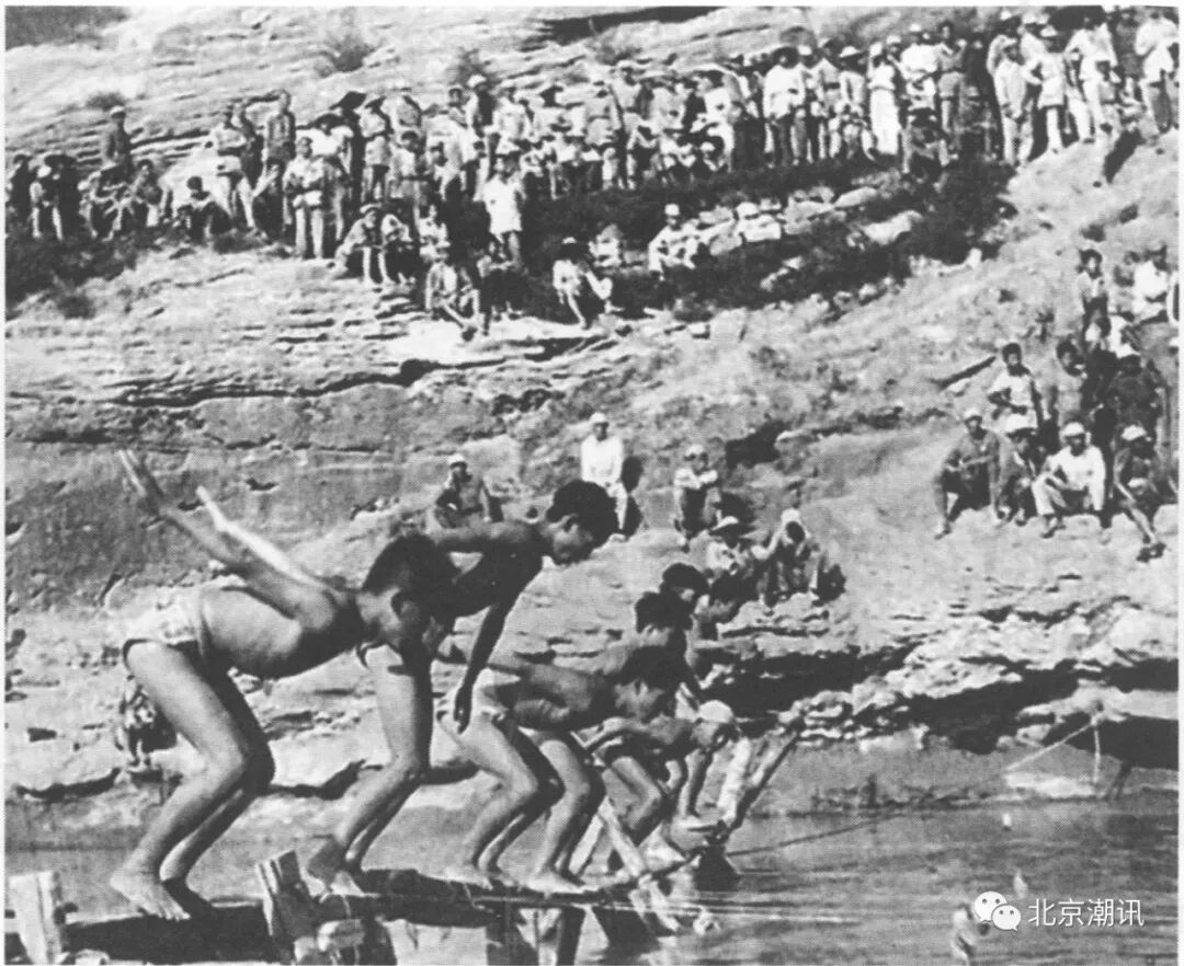 1942年在延安自然科学院参加游泳比赛(左二为蔡诚)