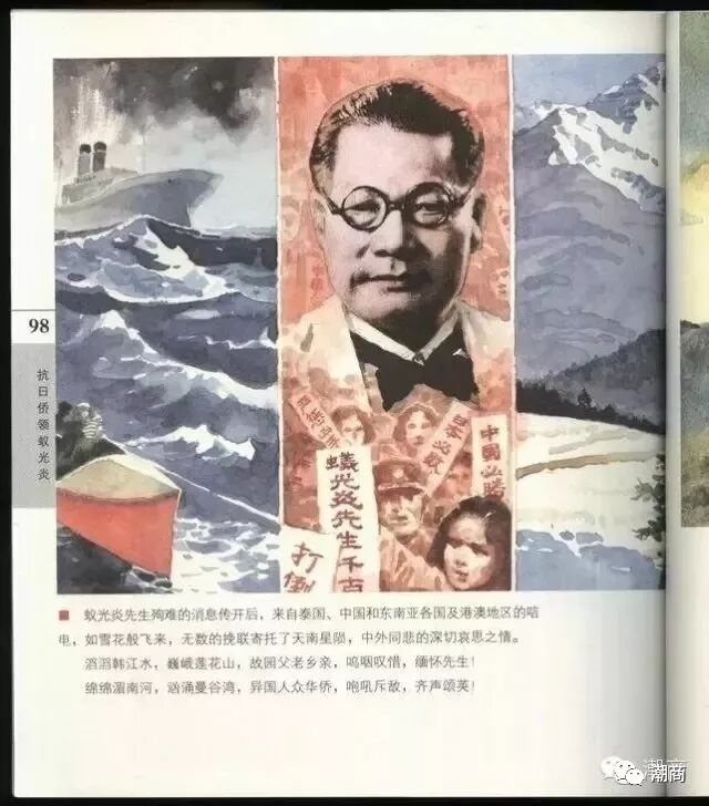 提示:点击上方"潮商"关注我们 9月3日是所有中国人必须铭记的日子 这是中国人民抗日战争胜利纪念日 也是世界反法西斯战争胜利纪念日 ![]() 1945年9月2日,在停泊于日本东京湾的“密苏里”号战列舰上,日本政府代表和军方官员正式签署了无条件投降书。 1945年9月3日,《新华日报》刊载毛泽东的题词: 庆祝抗日胜利 中华民族解放万岁 ![]() 2014年2月27日,十二届全国人大常委会第七次会议通过决定,确定每年9月3日为中国人民抗日战争胜利纪念日。 ![]() 蚁光炎 中国全面抗战爆发后,蚁光炎率先发动属下拒绝为日商驳运货物,带头拒卖暹米给日本,领导侨众开展抵制日货运动,沉重地打击了日本的战时经济。日敌、汪伪曾对他进行种种挑拨、利诱和威胁。最后,敌人策划了针对他的暗杀活动。1939年11月21日晚,蚁光炎在曼谷耀华力路被刺杀,时年60岁。 蚁光炎的光辉一生,为祖国盛衰兴亡,为中泰人民友谊,为社会公益福利,为华侨侨眷服务,奋斗不息,丰功伟绩,贡献无限。他是一代豪杰、一代侨领、一代英烈。 ![]() 蚁光炎 蚁光炎生于澄海东里南畔洲村,早年因为家道艰难,17岁就毅然决定“过番”到南洋创业,历尽坎坷。他白天在酒厂做杂工,早晚还得帮主管做家务,又苦又累,每月的工钱却只有两泰铢,一泰铢作为日常伙食生活费用,另外一泰铢托人带给远在家乡孤苦伶仃的嫂子。 由于劳务繁重,每到晚上饥饿难耐时,蚁光炎才去挑担的小贩那里买碗粥充饥。当时,一文钱可以喝一碗粥,另加一根油条。为了省钱,他征求小贩,可不可以每次一文钱只喝一碗粥,不吃油条,留到下一次再喝一碗粥,小贩同意了,这真是“一文钱掰成两半花”。 蚁光炎在柬埔寨的酒厂苦干六年仍一无所有,看不到出路。于是,他下决心离开酒厂,前往泰国曼谷,投靠堂兄蚁潮命,在“祥记”酱园当上一名杂工。他勤劳诚信,被老板看重,遂被任命为领班。不久之后,老板还将押运货物、货物进出口报关的差事也交给他。如此,蚁光炎身兼三职,业余时间还接手其他商行的督货事务。 为了谋求更好的发展,蚁光炎把多年来省吃俭用攒下的三百泰铢作为本钱,开始经营运输业。由于他经营有方,几年间公司就迅速发展起来。有了一定经济基础之后,蚁光炎开始从事商业贸易,兴办船务,创设工厂,大办火砻,事业遍及泰国、越南、柬埔寨等地。当时,恰逢泰国发展对外贸易大好时机,蚁光炎的事业如日中天,拥有上千职工,成为著名的华商,在促进泰国经济发展中发挥了巨大的作用。 蚁光炎毕生热爱祖国,忠贞不渝。1937年“七七”事变后,日寇加紧侵略中国,祖国处在最危急的时刻,泰国华侨掀起了抗日救亡高潮。蚁光炎把公司的全部业务交给妻子和侄儿蚁美厚管理,挺身而出,高举抗日救国旗帜,誓与祖国共命运、民族共存亡。 ![]() 《抗日侨领蚁光炎》 连环画 他宣传抗日救国,发动抵制日货,发起抗日募捐,出售爱国抗日公债,倡导华人舍财救国;他组织社团、学校义演,多方筹资捐献给祖国抗日;他鼓励、支持青年华侨回国抗日,期间共有七、八千人奔赴抗日前线,且过半牺牲在战火纷飞的战场上。