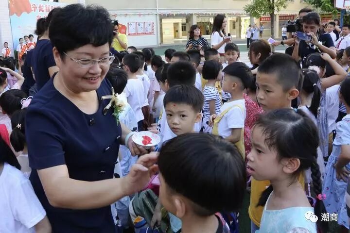 汕头市桂花小学校区文明栏 活动进行话题互动,学童入学读书前,启蒙师长需用红色的朱砂在学子们的额头正中点上红痣,称为“开天眼”,所以叫“朱砂启智”。校长张若冰带领班主任、科任老师现场为新生点红痣。“痣”通“智”,意为开启智慧,扬起理想的风帆,努力学习,用实际行动争做一名骄傲、光荣的小学生。