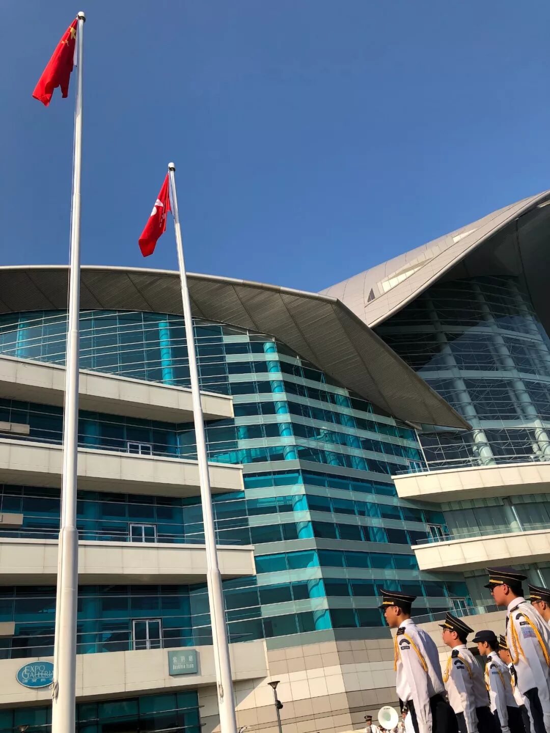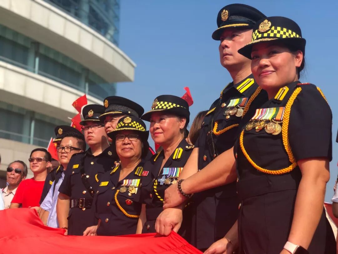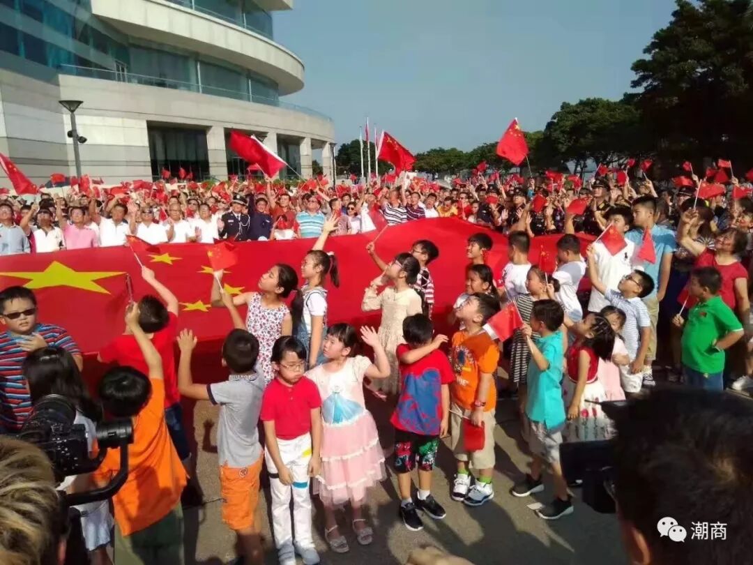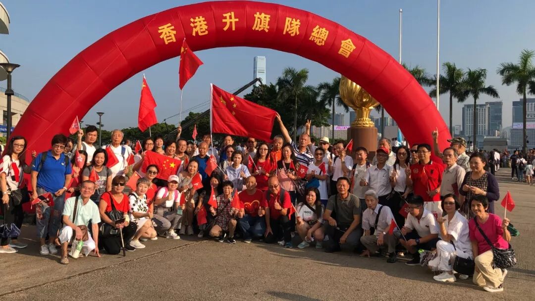 仪式过后,大伙儿簇拥在一面30多平方米的巨幅五星红旗周围,金紫荆广场成了红色的海洋!