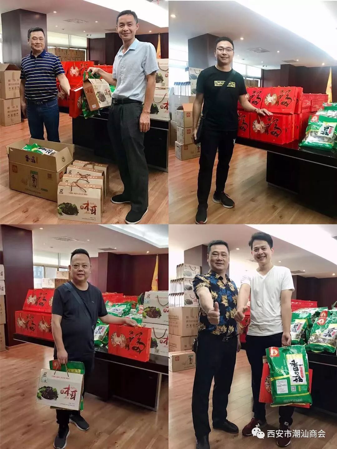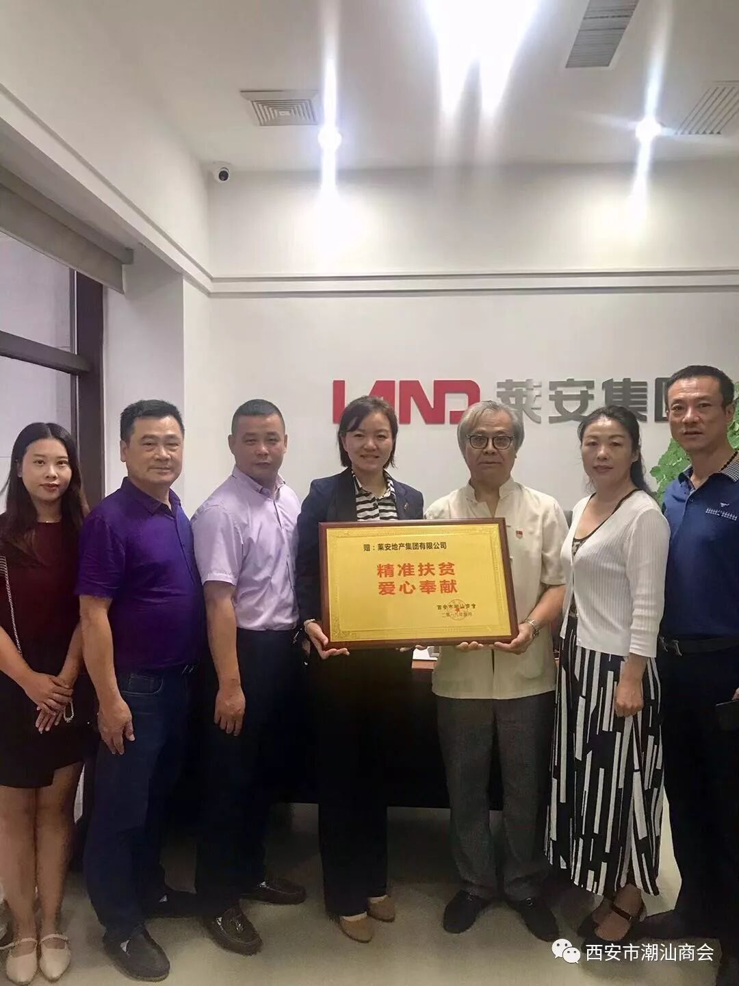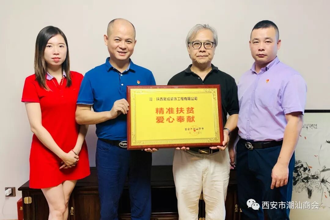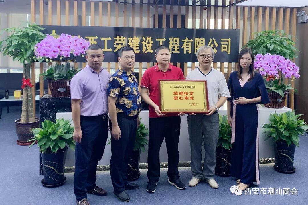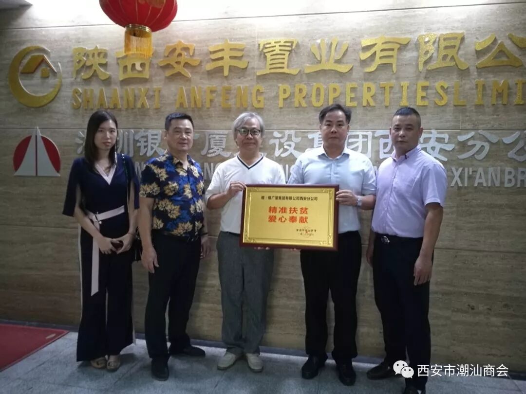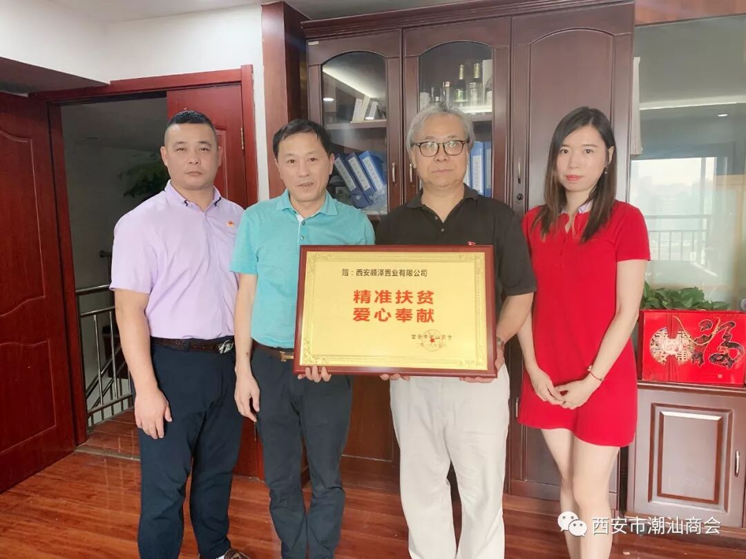 2019年9月6-7日下午,根据张奕夫会长、郑卓生执行会长的指示,为了感谢会员对精准扶贫的支持,西安市潮汕商会决定向购买累计一百包以上扶贫香菇的单位颁发“精准扶贫,爱心奉献”的荣誉牌匾。 商会党支部书记、 秘书长吴培坤和办公室工作人员一行拜访慰问了张奕夫会长的莱安地产集团有限公司、郑卓生执行会长的陕西祺丰建设集团有限公司、常务副会长姚汉铭的银广厦集团有限公司西安分公司、常务副会长洪赵亮的陕西工荣建设工程有限公司、常务副会长连俊江的西安瑞丰号干仓老茶文化有限公司、副会长蔡中豪的陕西聚成装饰工程有限公司、副会长陈辉龙的西安星辉电器有限公司、副会长林德洪的西安顺泽置业有限公司、理事郑贵财的西安贵德投资有限公司,向他们颁发荣誉牌匾。