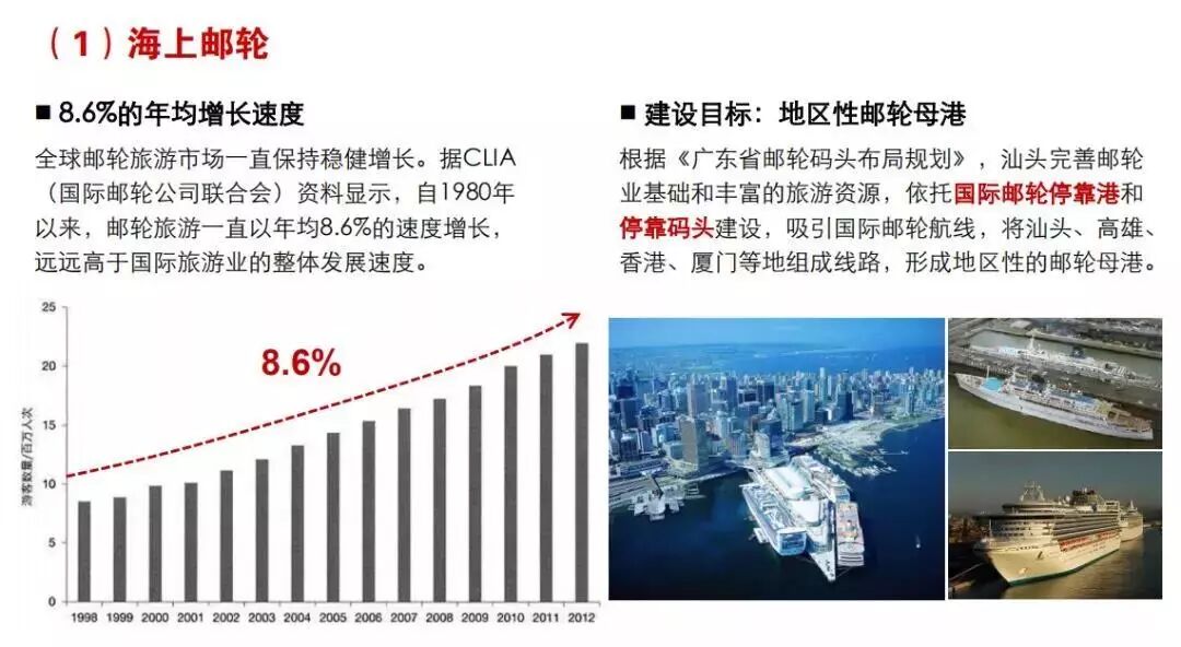 ![]() 岸线供给条件分析 其中,双方将依托各自优势开通汕头湾区海上交通、观光旅游航线,并重点针对海上观光旅游进行统筹规划,打造海上观光旅游特色产品,让更多游客领略汕头湾区及粤东海岸线的旅游魅力。 同时,深圳航运集团和汕头交通运输集团也将持续践行绿色环保的理念,针对南澳岛环境保护,在陆岛交通方面将选择环保、节能、美观、舒适的新型交通工具,为游客提供便捷、舒适的公共交通接驳和配套公共停车区,持续打造绿色旅游生态,提升南澳岛国际旅游品牌价值。 打造地区性的邮轮母港 据悉,构筑汕头滨海旅游发展新格局、积极参与粤东滨海旅游市场开发是深圳航运集团践行滨海旅游战略发展的重要举措之一。 ![]() ![]() 本次签约,深圳航运集团将与汕头交通运输集团进一步深化战略合作关系,开展范围更广、层次更深的全面合作,实现优势互补和互利共赢,共同为广大市民及游客解锁更多更具特色的滨海旅游新方式。 一 点 小 结 今年4月4日,在“2019汕头国有集团推介会”上,深航运董事长兼总裁屈晨表示集团将加快在汕头发展的步伐,特别是亚青会落户汕头的有利契机,充分挖掘汕头的文旅资源,争取在滨海旅游产业等方向寻找投资和合作机会。 在客运码头营运、造船修船等领域与汕头交通运输集团等展开合作,这一次的联盟,双方做到互利共赢,相信汕头也会借此机会再次向外展现强大实力! 来源:汕头房产焦点 声明:本文不代表我们的观点,仅供读者参考。文章版权归原作者所有,如有侵权,请联系我们进行删除。 潮 商 文化的境界 · 财富的智慧
