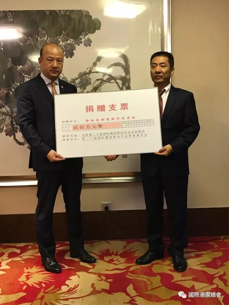 提示:点击上方"潮商"关注我们 5月6日,国际潮团总会第二十届第一次常务理事暨理事联席会议在深圳市紫荆山庄召开。 会议召开前夕,与新西兰潮属总会有著深厚友谊的海南省潮商经济促进会一行五人在会长洪江游先生带领下,与从大洋州远道赴会的新西兰潮属总会、第二十届国际潮团联谊年会筹备委员会团队欢聚一堂,同时隆重宣布:将捐赠200万元人民币作为年会活动经费。